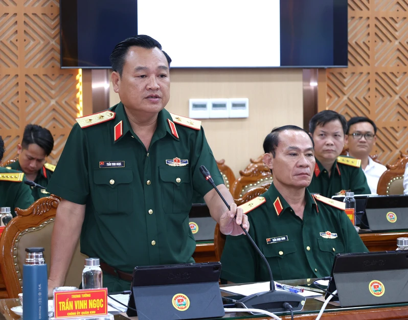 Trung tướng Trần Vinh Ngọc, Bí thư Đảng ủy, Chính ủy Quân khu phát biểu tại hội nghị.