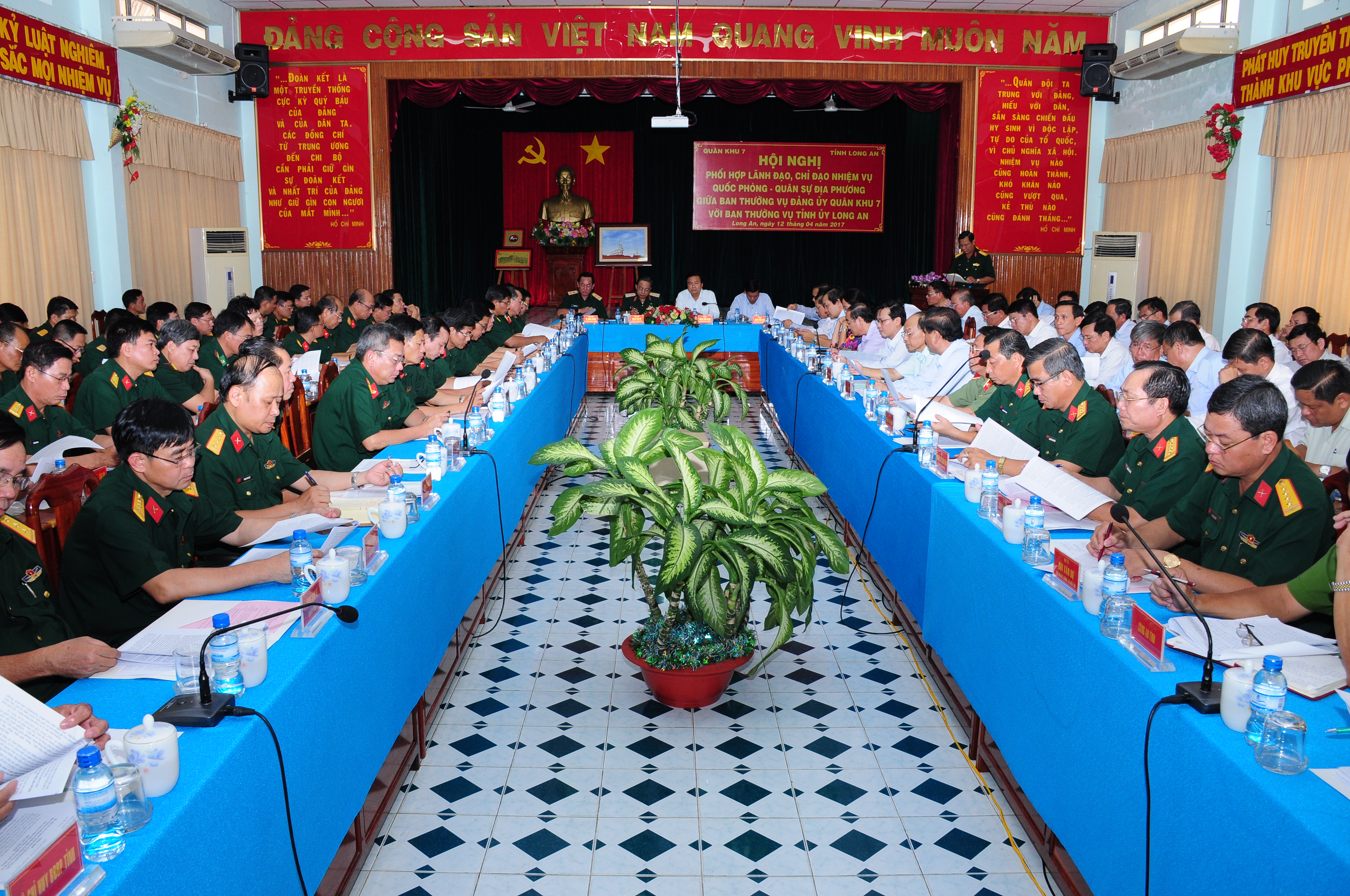 Hội nghị đã chỉ rõ, trong thế trận phòng thủ Quân khu 7, tỉnh Long An là địa bàn trọng điểm, đảm nhiệm hướng quan trọng phòng thủ Tây Nam Tổ quốc, trực tiếp thế trận bảo vệ chủ quyền, cương vực lãnh thổ quốc gia, biên cương Tổ quốc. Trong những năm qua, cấp ủy và chính quyền địa phương các cấp trong tỉnh cùng với đoàn thể và Nhân dân rất quan tâm, tin tưởng và chăm lo cho các lực lượng vũ trang nhất là các điểm, chốt dân quân, đồn, trạm biên phòng và các đại đội trên tuyến biên giới.