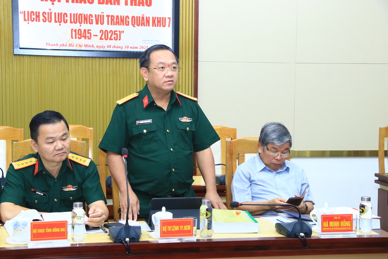 Thời gian gấp rút, đồng chí Tư lệnh Quân khu đề nghị: Cục Chính trị Quân khu chỉ đạo cơ quan chuyên môn cung cấp số liệu, nội dung theo yêu cầu của Ban Biên soạn, bảo đảm tính chính xác, thống nhất; Bộ Tham mưu Quân khu phối hợp chặt chẽ, tranh thủ xin ý kiến các nhà khoa học; chỉ đạo cơ quan chuyên môn rà soát, chỉnh sửa nội dung, bố cục, văn phong diễn đạt logic, mạch lạc theo đóng góp của các đại biểu để tổ chức nghiệm thu, xuất bản và phát hành đúng vào dịp kỷ niệm 80 năm Ngày truyền thống Quân khu 7 (10/12/1945 - 10/12/2025).