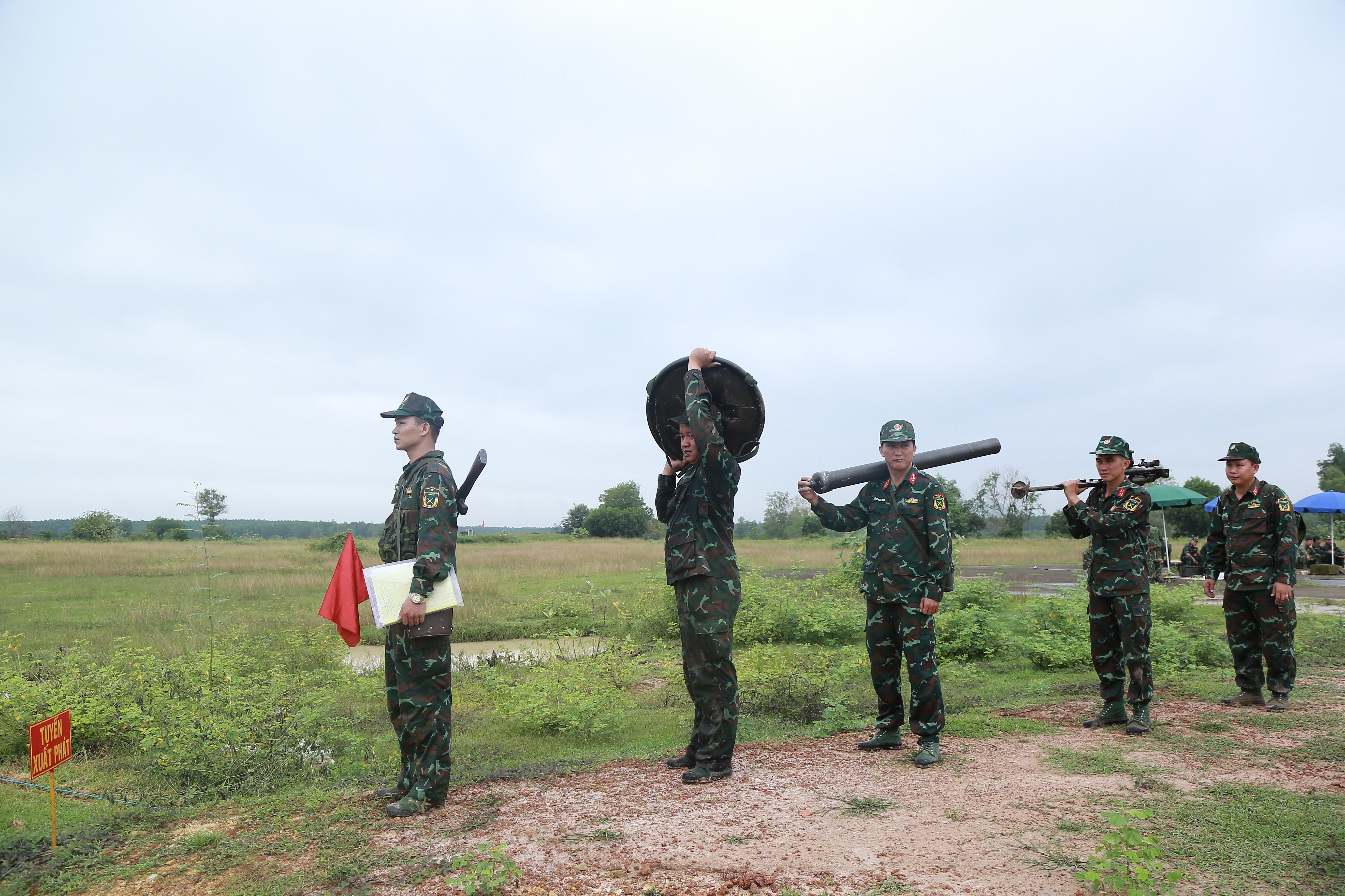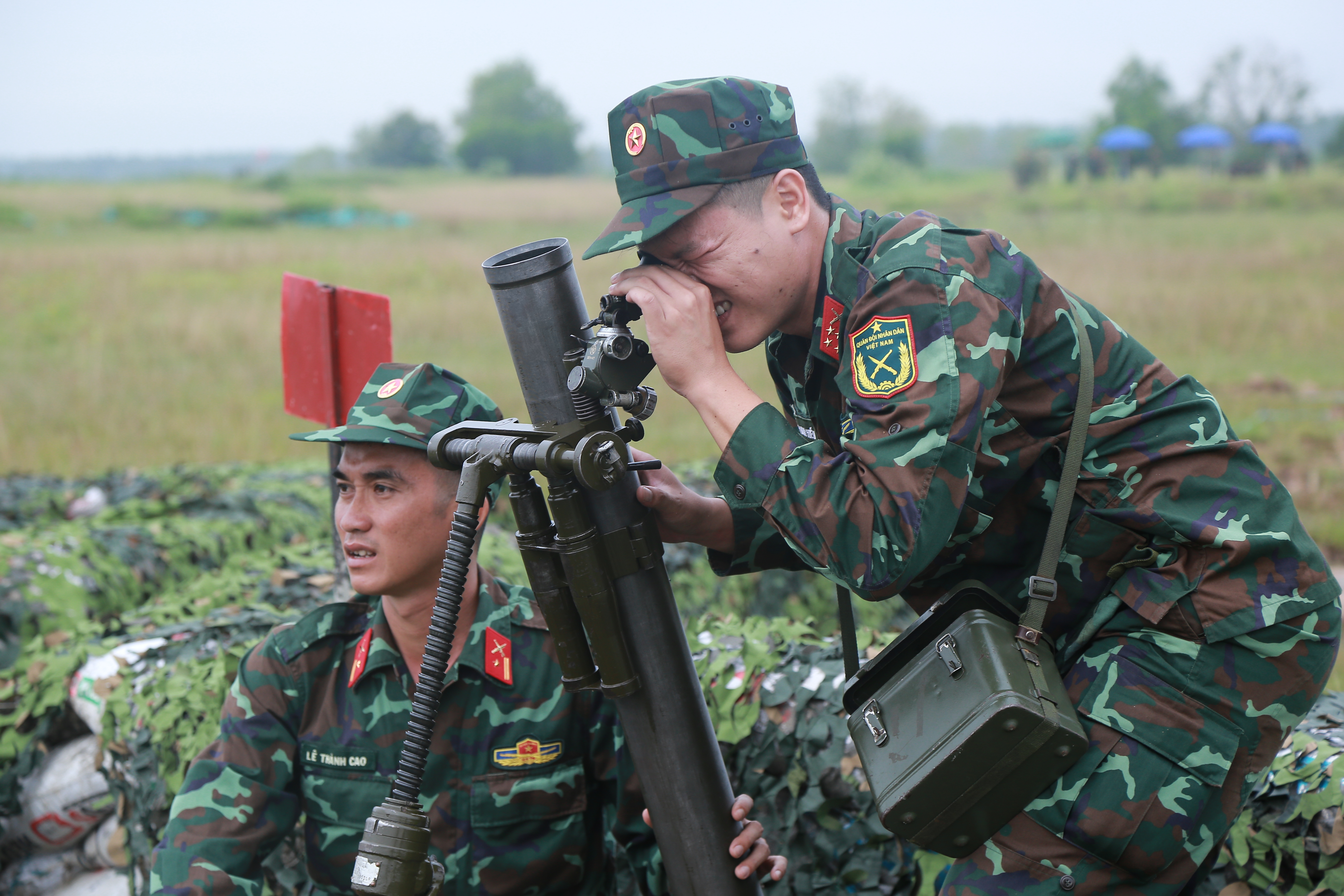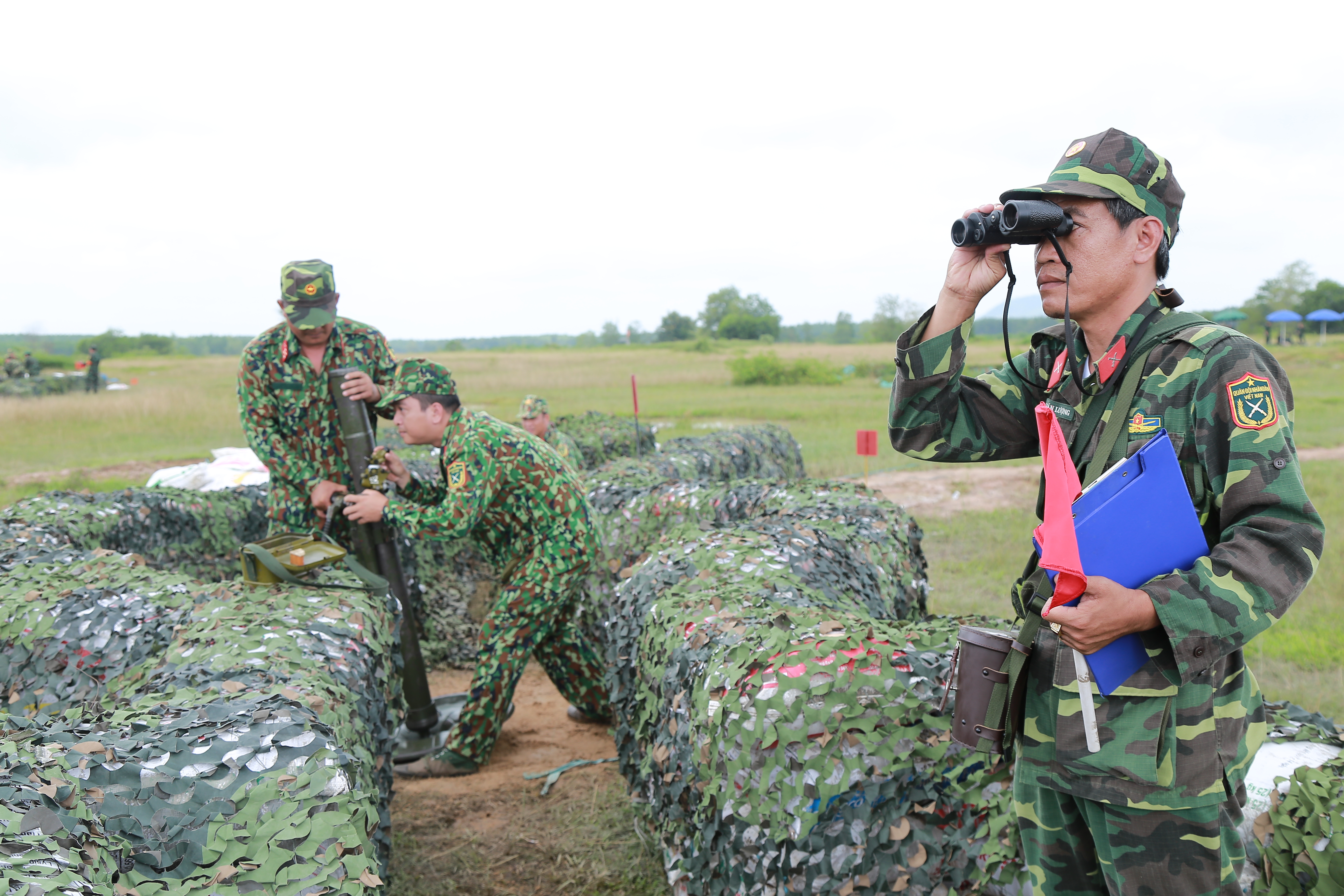 Ban tổ chức theo dõi các khẩu đội thực hành kiểm tra.