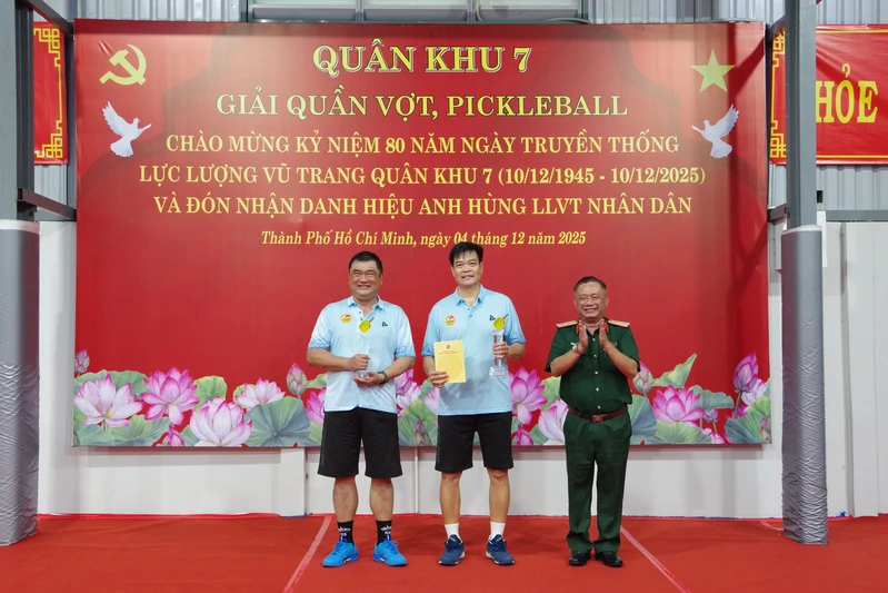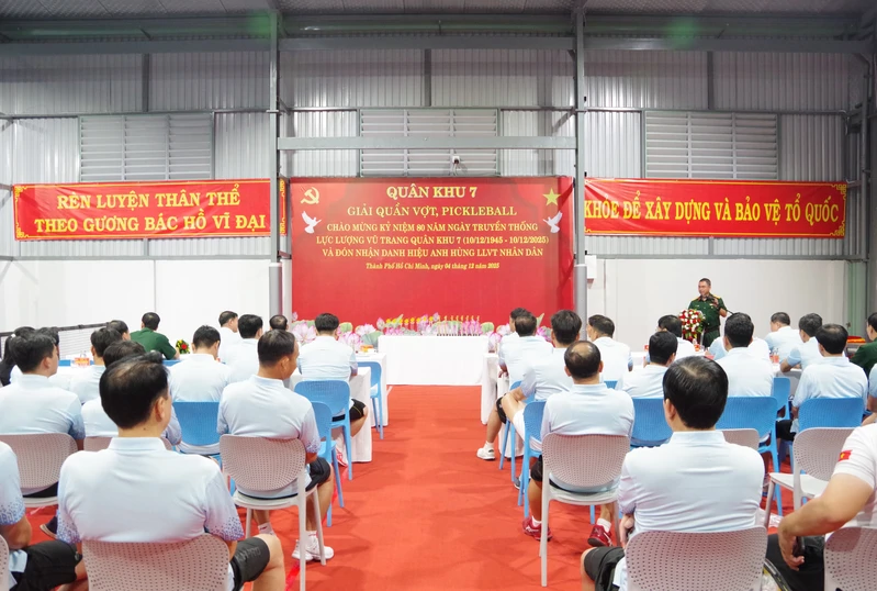(QK7 Online) - Ngày 4/12, Quân khu 7 tổ chức giải quần vợt, pickleball chào mừng kỷ niệm 80 năm Ngày truyền thống lực lượng vũ trang Quân khu 7 (10/12/1945 - 10/12/2025) và đón nhận danh hiệu Anh hùng Lực lượng vũ trang nhân dân. Đại tá Lê Xuân Bình, Phó Tư lệnh, Tham mưu trưởng Quân khu chủ trì khai mạc.