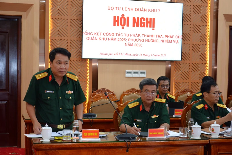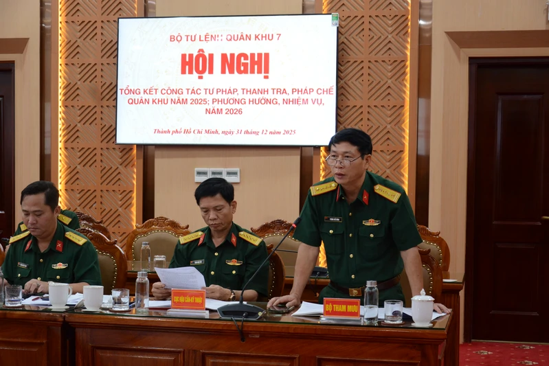(QK7 Online) - Sáng 31/12, Quân khu 7 tổ chức Hội nghị tổng kết công tác tư pháp, thanh tra, pháp chế năm 2025 và triển khai phương hướng, nhiệm vụ năm 2026. Thiếu tướng Trần Ngọc Minh, Phó Tư lệnh Quân khu chủ trì Hội nghị.