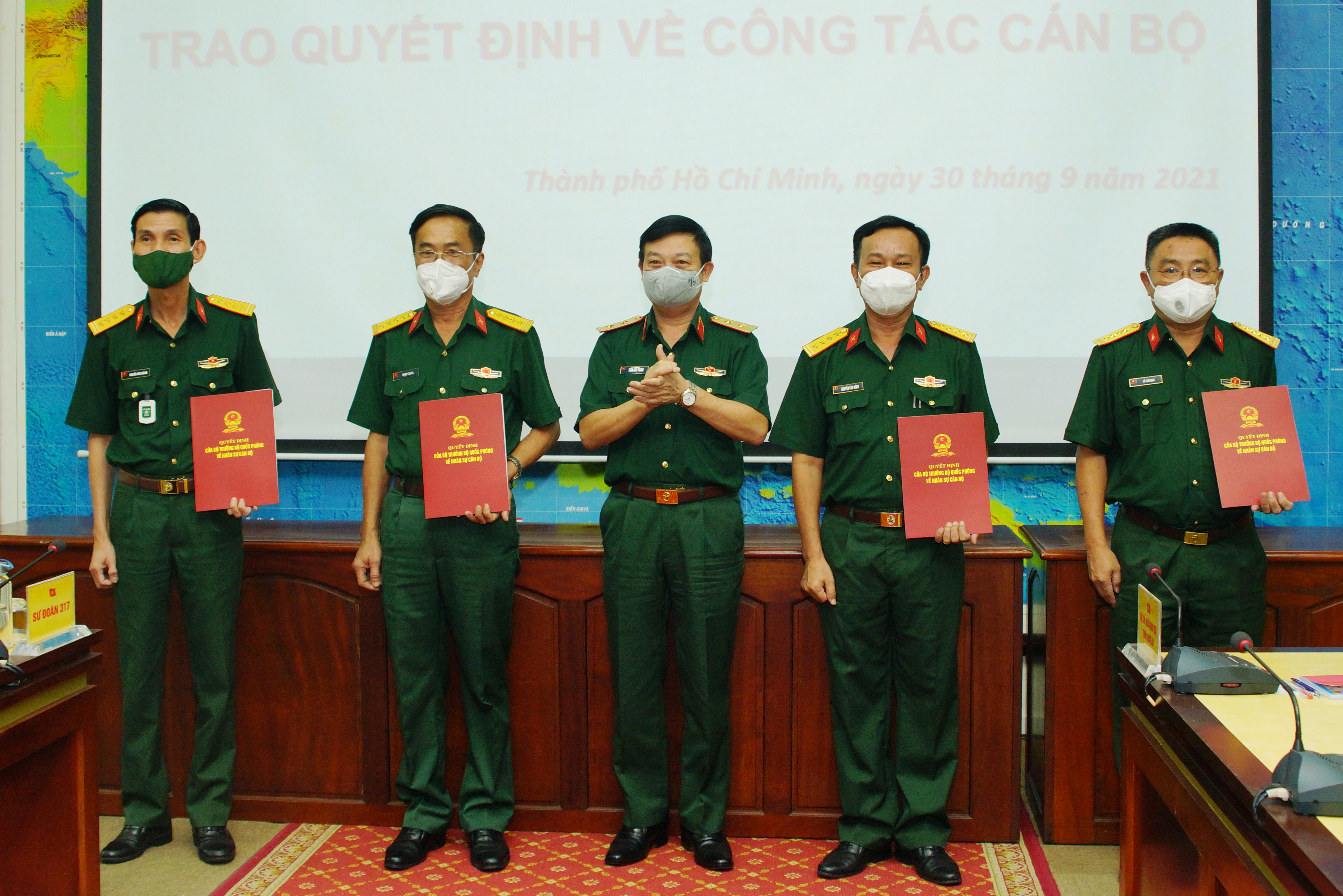 Trao các quyết định điều động, bổ nhiệm chức vụ cho các đồng chí: Đại tá Lê Hoài Nam, Phó Chủ nhiệm Kỹ thuật Quân khu được bổ nhiệm Chủ nhiệm Kỹ thuật Quân khu; Thượng tá Phạm Văn Kiên, Phó Tham mưu trưởng Sư đoàn 5 được bổ nhiệm giữ chức Phó Sư đoàn trưởng Sư đoàn 317; Thượng tá Trương Quốc Vinh, Phó Tham mưu trưởng Bộ CHQS tỉnh Long An bổ nhiệm Phó chỉ huy trưởng Bộ CHQS tỉnh Long An.