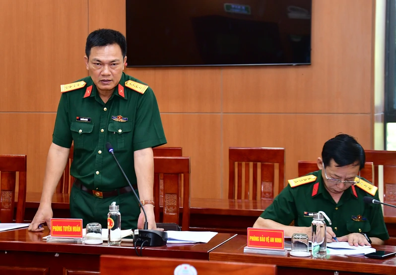 Thiếu tướng Phạm Anh Tuấn, Ủy viên Ban Thường vụ Đảng ủy, Chủ nhiệm Chính trị Quân khu chủ trì hội nghị.