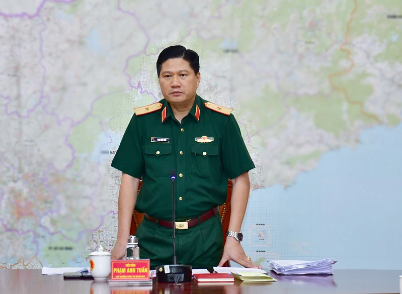 Thiếu tướng Phạm Anh Tuấn, Ủy viên Ban thường vụ Đảng ủy, Chủ nhiệm Chính trị Quân khu kết luận hội nghị.