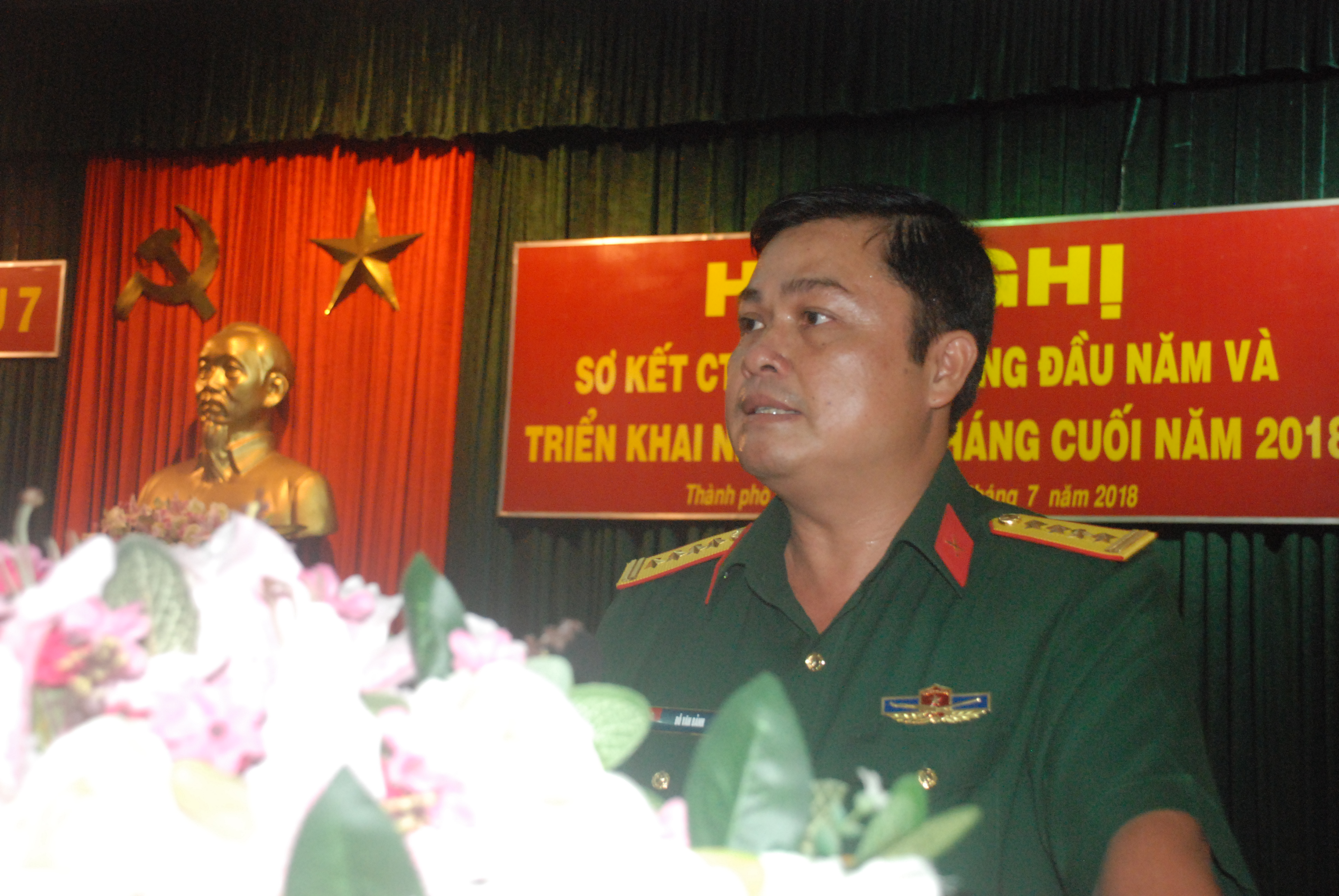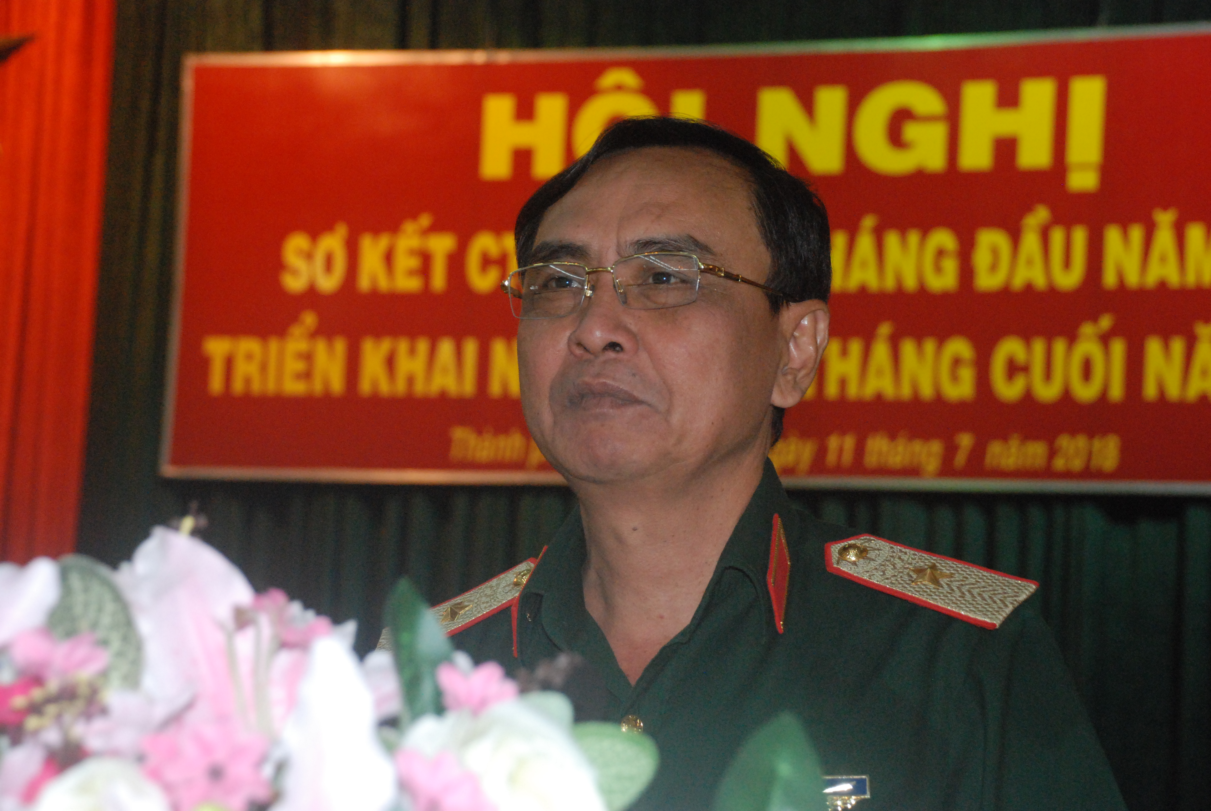 Đại tá Đỗ Văn Bảnh, Chủ nhiệm Chính trị Quân khu báo cáo kết quả 6 tháng đầu năm và gợi ý tham luận
