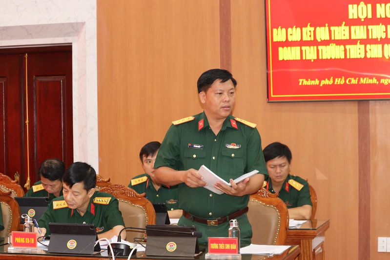 Tại hội nghị, các đơn vị thi công, tư vấn thiết kế, đơn vị có liên quan báo cáo kết quả thực hiện cải tạo, sửa chữa, nâng cấp các hạng mục doanh trại như hệ thống nhà ở, giảng đường, khu học tập, sinh hoạt, sân bãi huấn luyện…bảo đảm đồng bộ, chính quy, hiện đại, phù hợp với chức năng, nhiệm vụ đào tạo của nhà trường.