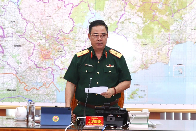 Thiếu tướng Lê Xuân Bình, Phó Tư lệnh, Tham mưu trưởng Quân khu phát biểu kết luận hội nghị.