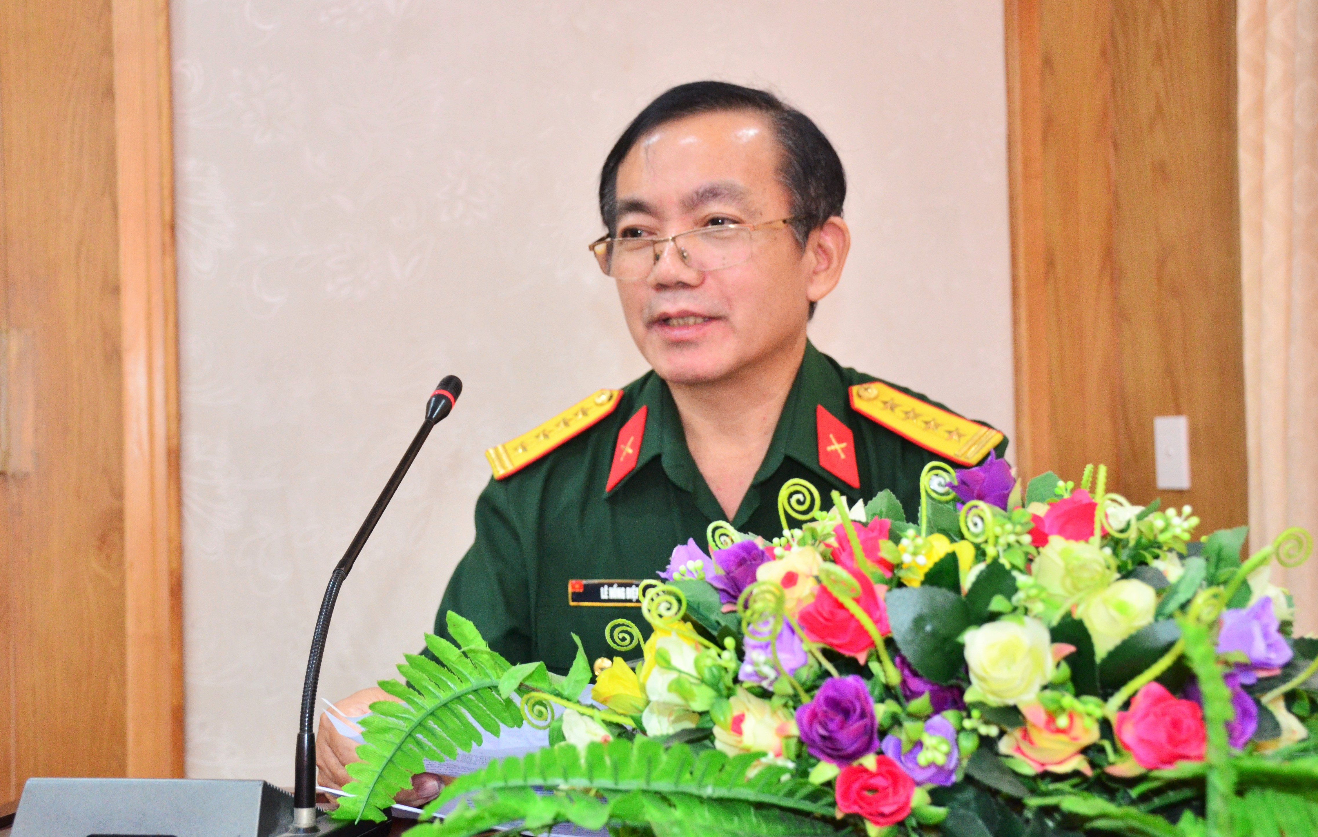 Đại tá Lê Hồng Điệp, Trưởng phòng Khoa học Quân sự Quân khu 7 phát biểu.