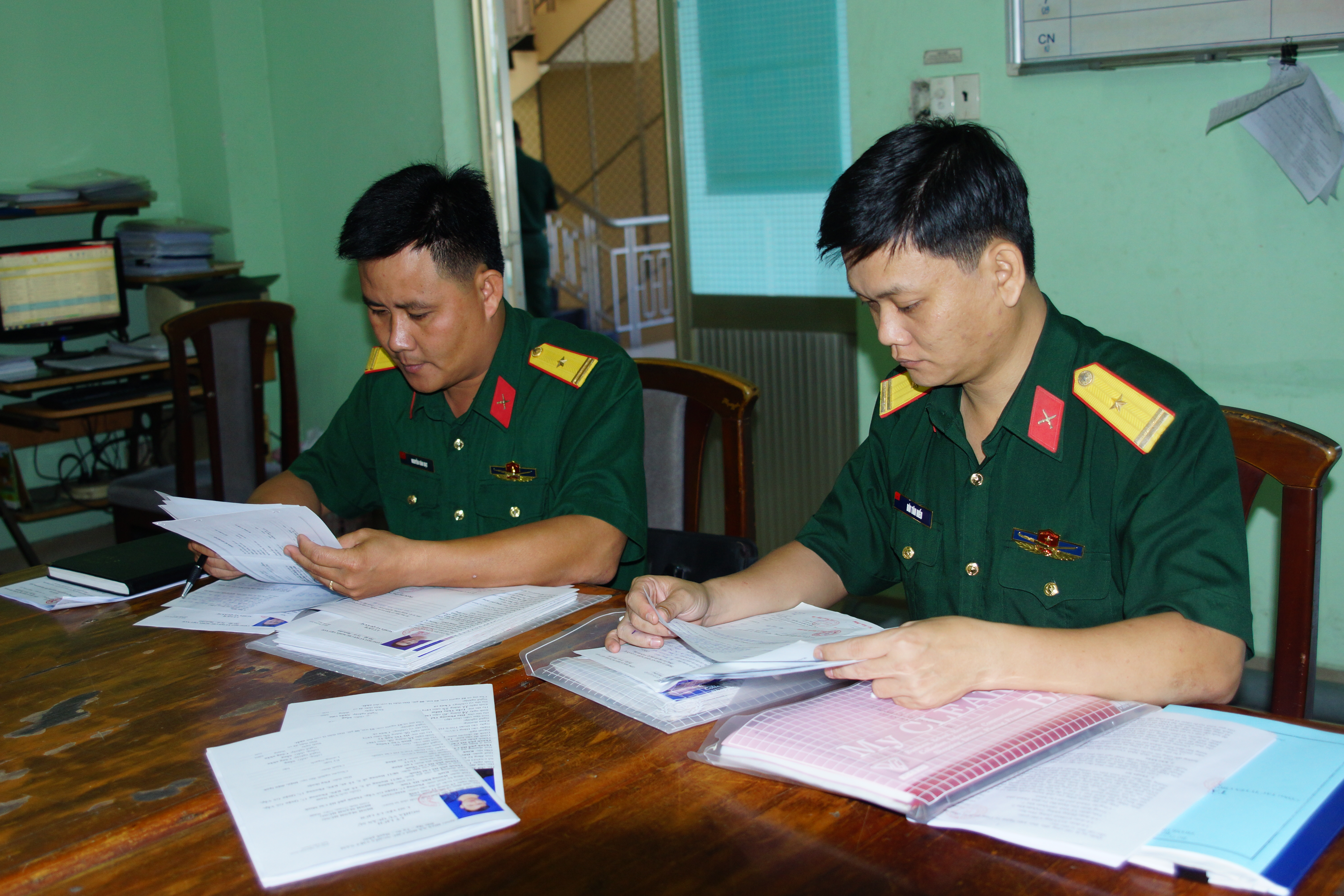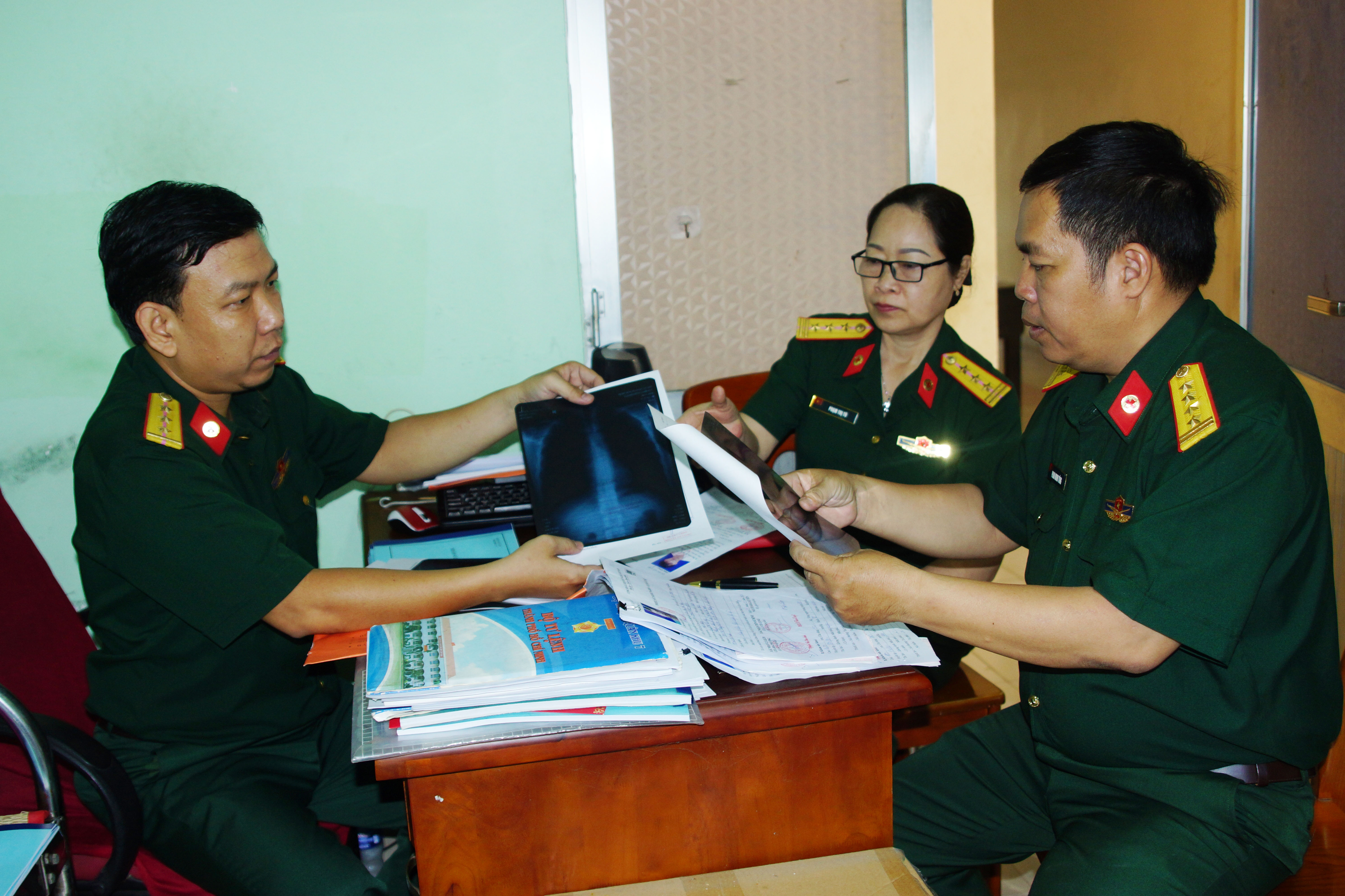 Kiểm tra hồ sơ khám sức khỏe công dân trúng tuyển nghĩa vụ quân sự năm 2021.