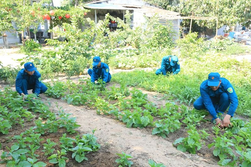Lực lượng dân quân xã Tân Thành tăng gia sản xuất, đảm bảo đời sống bộ đội.