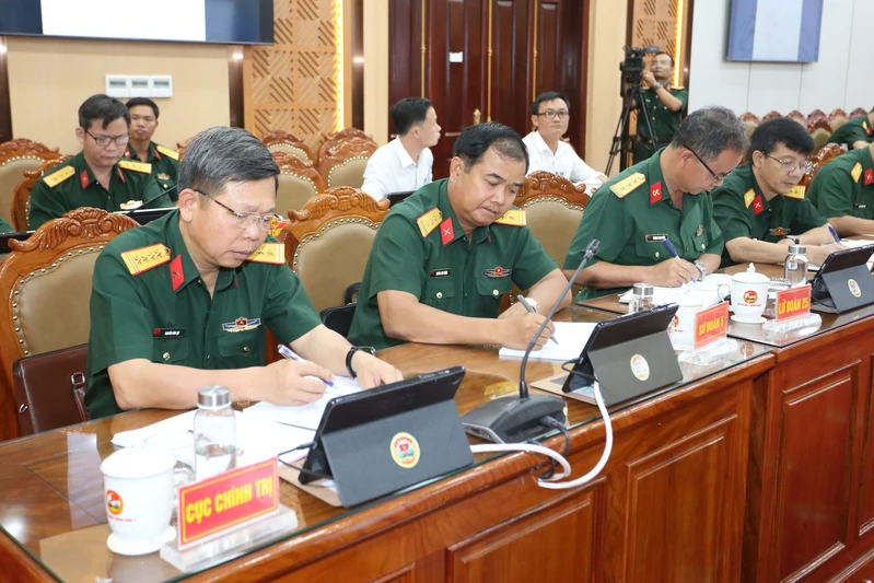 Đại tá Nguyễn Văn Lộc, Phó Chủ nhiệm Chính trị Quân khu cùng thủ trưởng các cơ quan Quân khu, đơn vị dự cuộc họp.