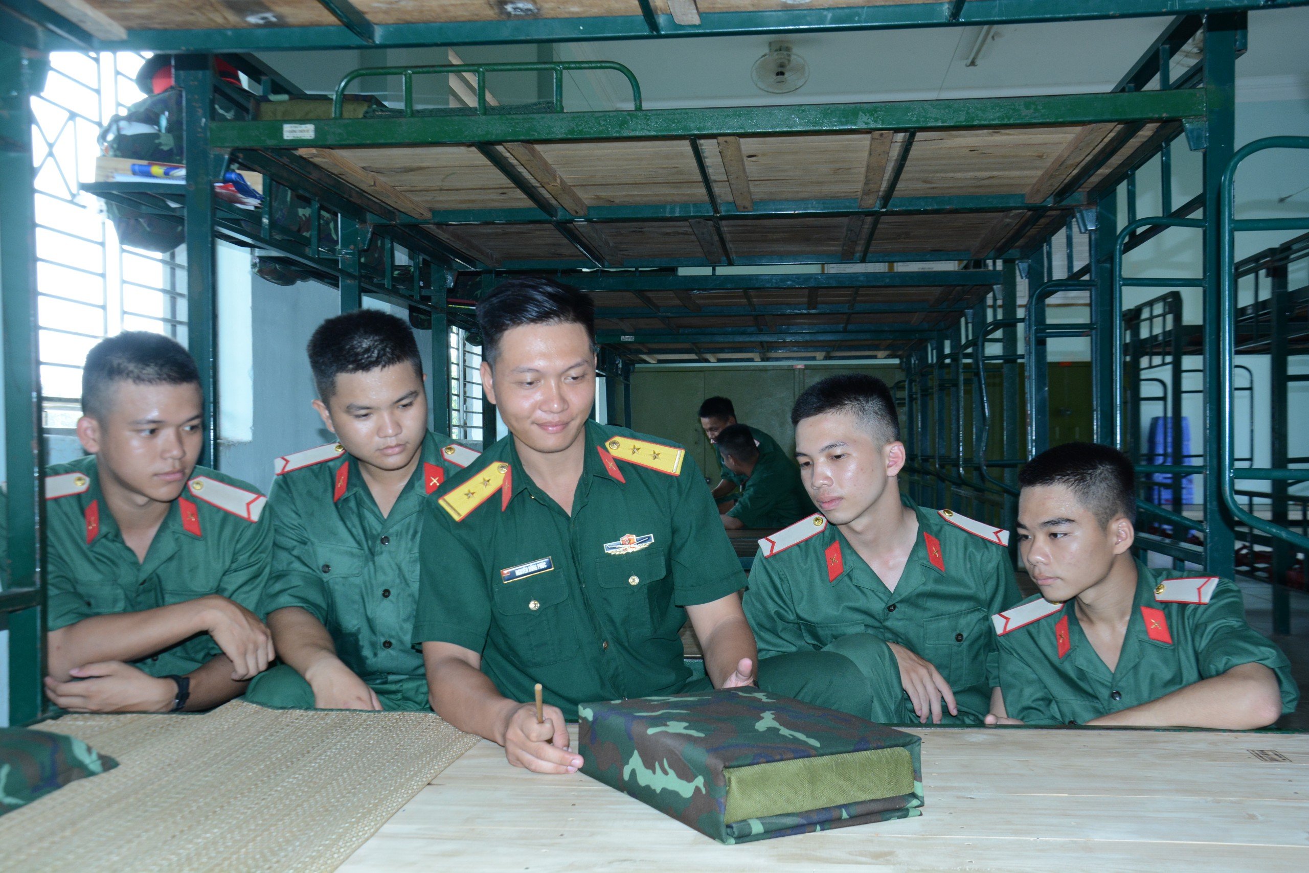 Cán bộ tận tình chỉ bảo chiến sĩ mới trong sinh hoạt