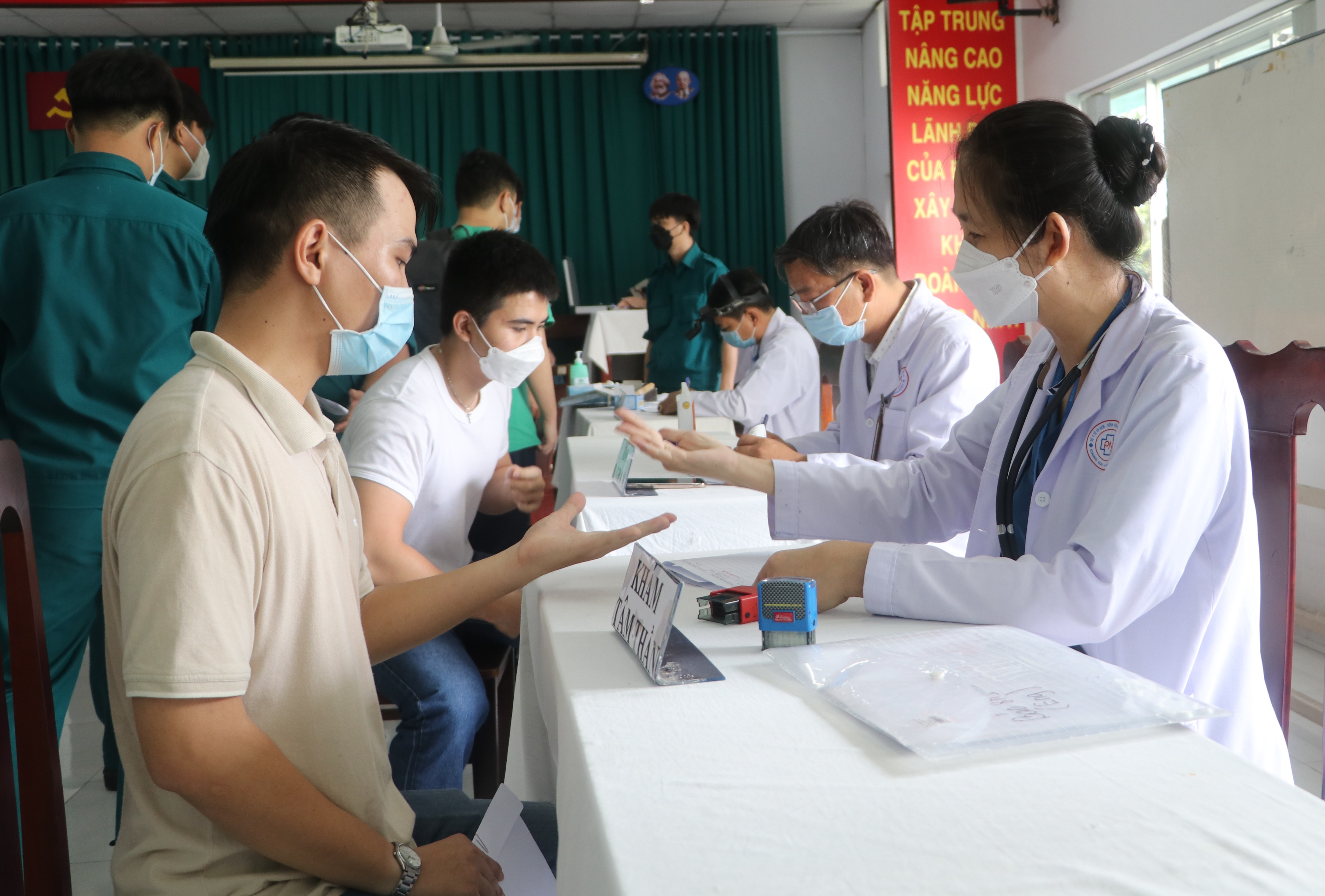 Với yêu cầu cao trong khám, kết luận chính xác tình trạng sức khỏe của từng công dân, Hội đồng khám sức khỏe nghĩa vụ quân sự quận đã tổ chức khám khép kín, gồm khám thể lực, khám lâm sàng và cận lâm sàng các chuyên khoa.