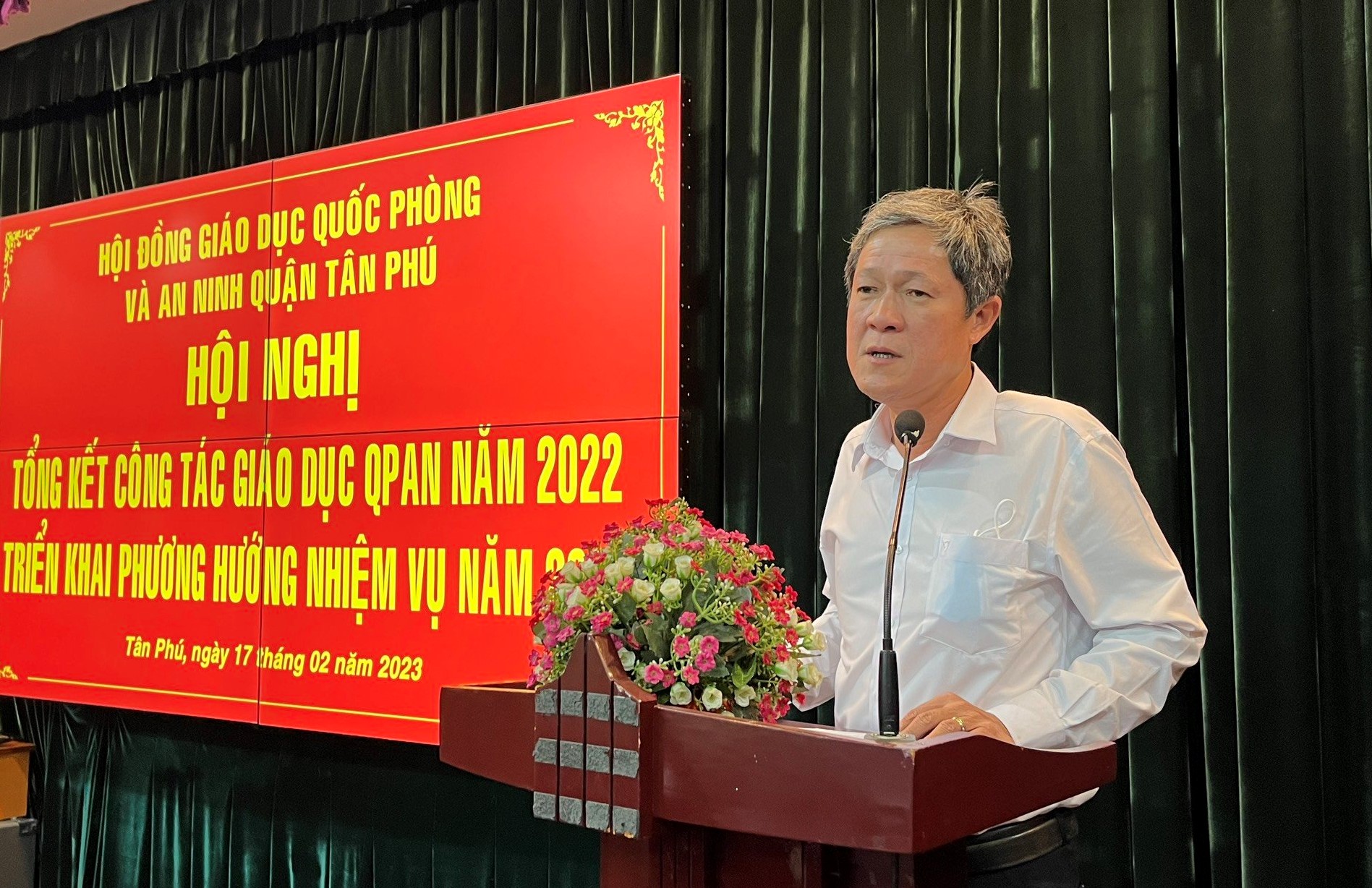 Đồng chí Nguyễn Công Chánh, Phó Chủ tịch Ủy ban nhân dân quận, Chủ tịch Hội đồng Giáo dục quốc phòng và an ninh quận Tân Phú kết luận hội nghị.