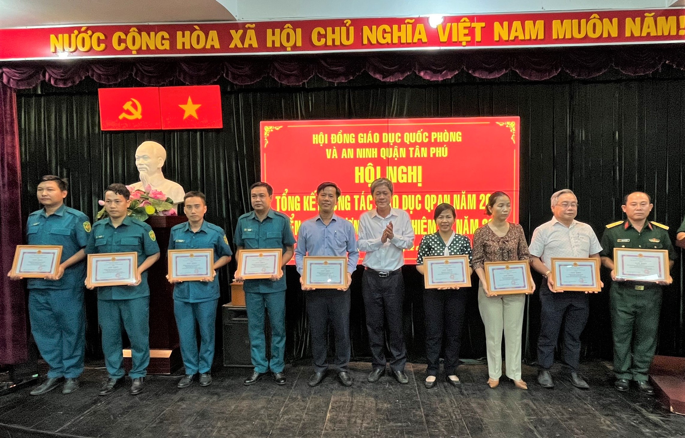 Ủy ban nhân dân quận tặng giấy khen cho 10 tập thể và 12 cá nhân có thành tích xuất sắc trong công tác giáo dục quốc phòng và an ninh năm 2022.