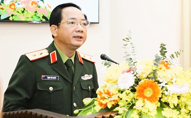 Trung tướng Trịnh Văn Quyết - Ủy viên Trung ương Đảng, Phó chủ nhiệm Tổng cục Chính trị phát biểu đề dẫn tọa đàm.