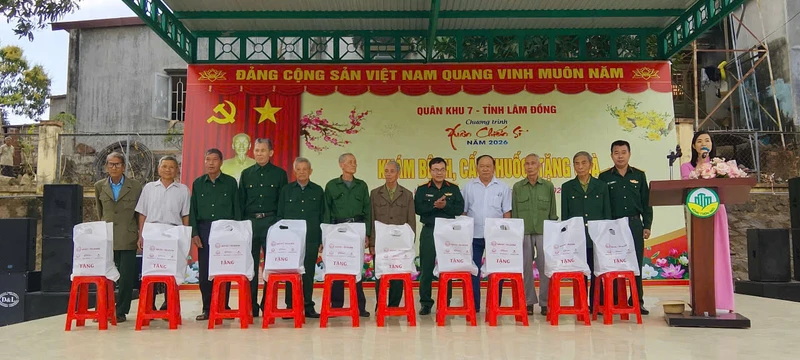 (QK7 Online) – Những hoạt động đầu tiên trong chuỗi chương trình “Xuân Chiến sĩ” năm 2026 đã được LLVT Quân khu 7 triển khai sôi nổi tại tỉnh Lâm Đồng. Hàng trăm lượt Nhân dân được thăm khám, tư vấn sức khỏe; nhiều người có công với cách mạng, hộ gia đình có hoàn cảnh khó khăn và các đơn vị lực lượng vũ trang đang đóng quân, làm nhiệm vụ trên tuyến biên giới được trao tặng quà Tết.
