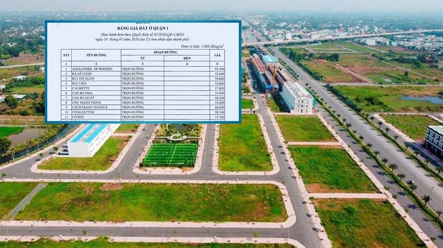 Bảng giá đất được xây dựng theo loại đất, khu vực, vị trí. Đối với khu vực có bản đồ địa chính dạng số và cơ sở dữ liệu giá đất thì được xây dựng bảng giá đất đến từng thửa đất.