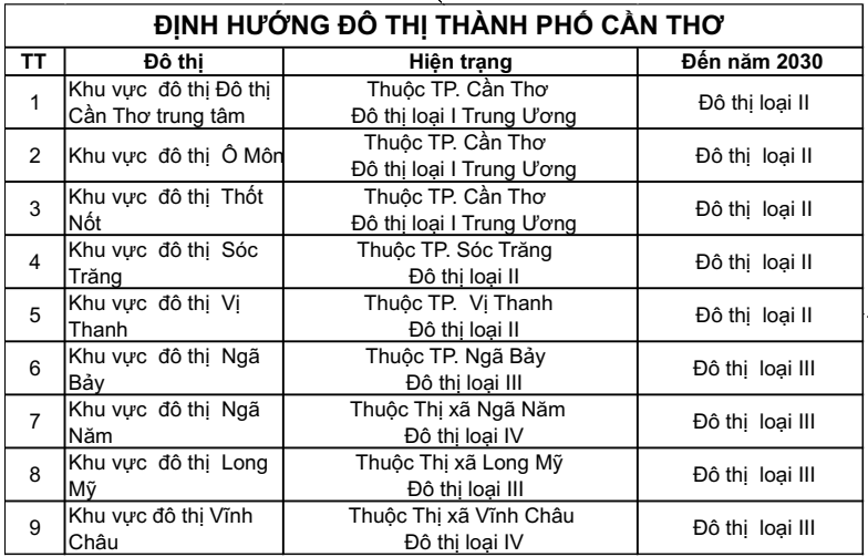 Phân hạng đô thị: 5 đô thị loại II – 4 đô thị loại III