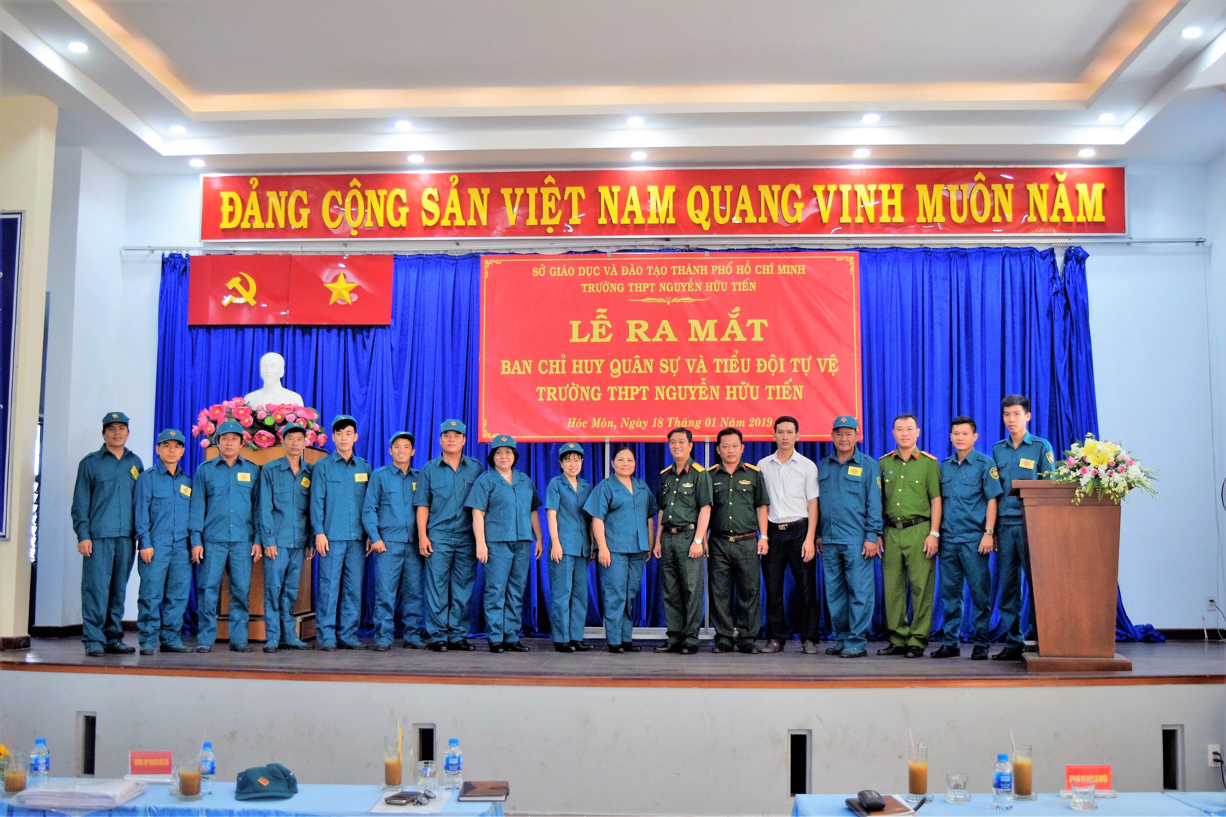 (QK7 Online) - Ngày 18 tháng 01 năm 2019 , Ban Chỉ huy Quân sự huyện Hóc Môn, Thành phố Hồ Chí Minh phối hợp Trường THPT Nguyễn Hữu Tiến tổ chức lễ trao quyết định thành lập, bổ nhiệm cán bộ Ban Chỉ huy quân sự và Tiểu đội tự vệ của trường.