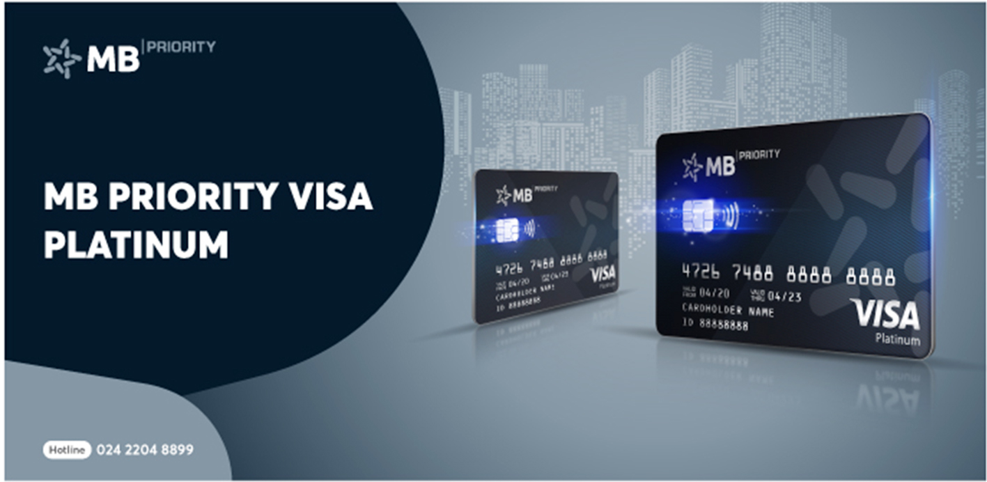 Với sự khác biệt và đẳng cấp vượt trội, MB Priorirty Visa Platinum hứa hẹn tạo ra một “cơn sốt” cho thị trường ngay từ khi được ra mắt. Để được hỗ trợ tốt nhất, khách hàng liên hệ dịch vụ ngân hàng ưu tiên của MB thông qua số điện thoại: 024 2204 88 99 hoặc truy cập: