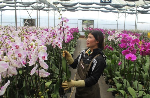 Kiểm tra chất lượng hoa trước khi xuất vườn tại Trang trại hoa lan YSA Orchid Fram.