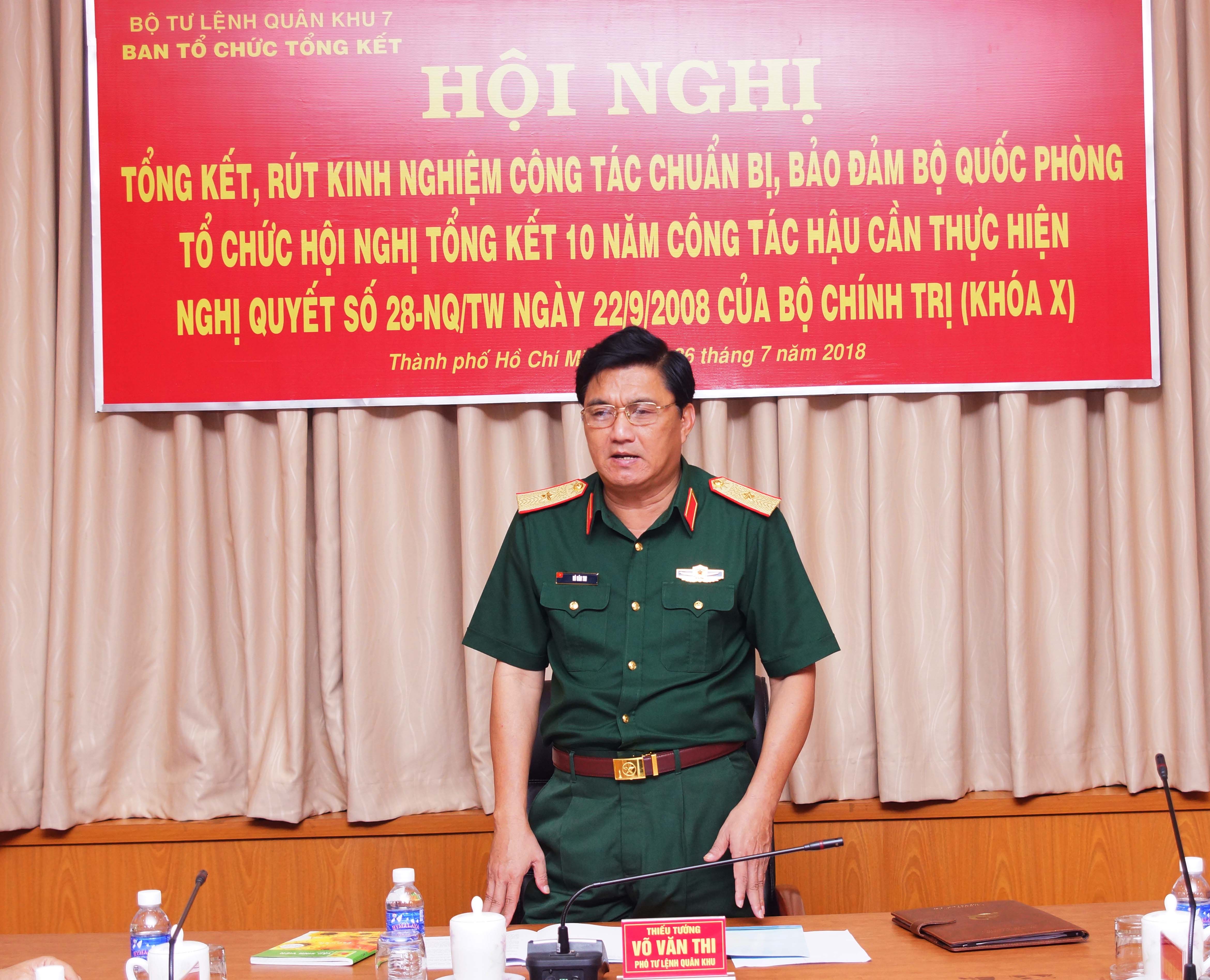 Thiếu tướng Võ Văn Thi, Phó Tư lệnh Quân khu 7 phát biểu chỉ đạo hội nghị