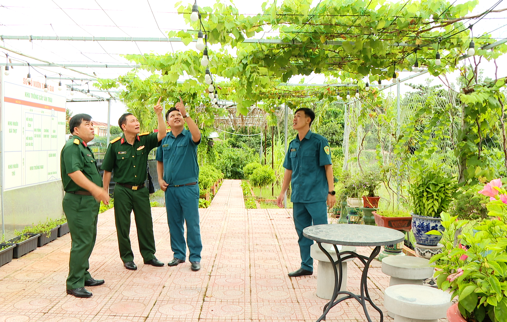 Được Đảng ủy, Ủy ban Nhân dân phường giao gần 3.000m2 đất để tăng gia sản xuất, cán bộ, chiến sĩ Ban CHQS phường Hưng Định, thành phố Thuận An, tỉnh Bình Dương kết hợp tăng gia sản xuất hiệu quả đi đôi với xây dựng cảnh quan môi trường xanh, sạch, đẹp. Hiện tại, cán bộ, chiến sĩ đang chăm sóc hàng trăm con gà, chim các loại, trong đó nhiều giống có giá trị, hiệu quả kinh tế cao như gà nòi, gà cảnh, chim trĩ… Diện tích hạn hẹp nên ao nuôi cá được xây nổi, chỉ khoảng gần 100m2 các anh phân ra làm nhiều ô, mỗi ô nuôi 1 loại như cá trê, cá sặt, cá tai tượng… nguồn thức ăn là cám thực phẩm và canh cơm thừa vừa tiết kiệm được chi phí và bảo vệ môi trường.