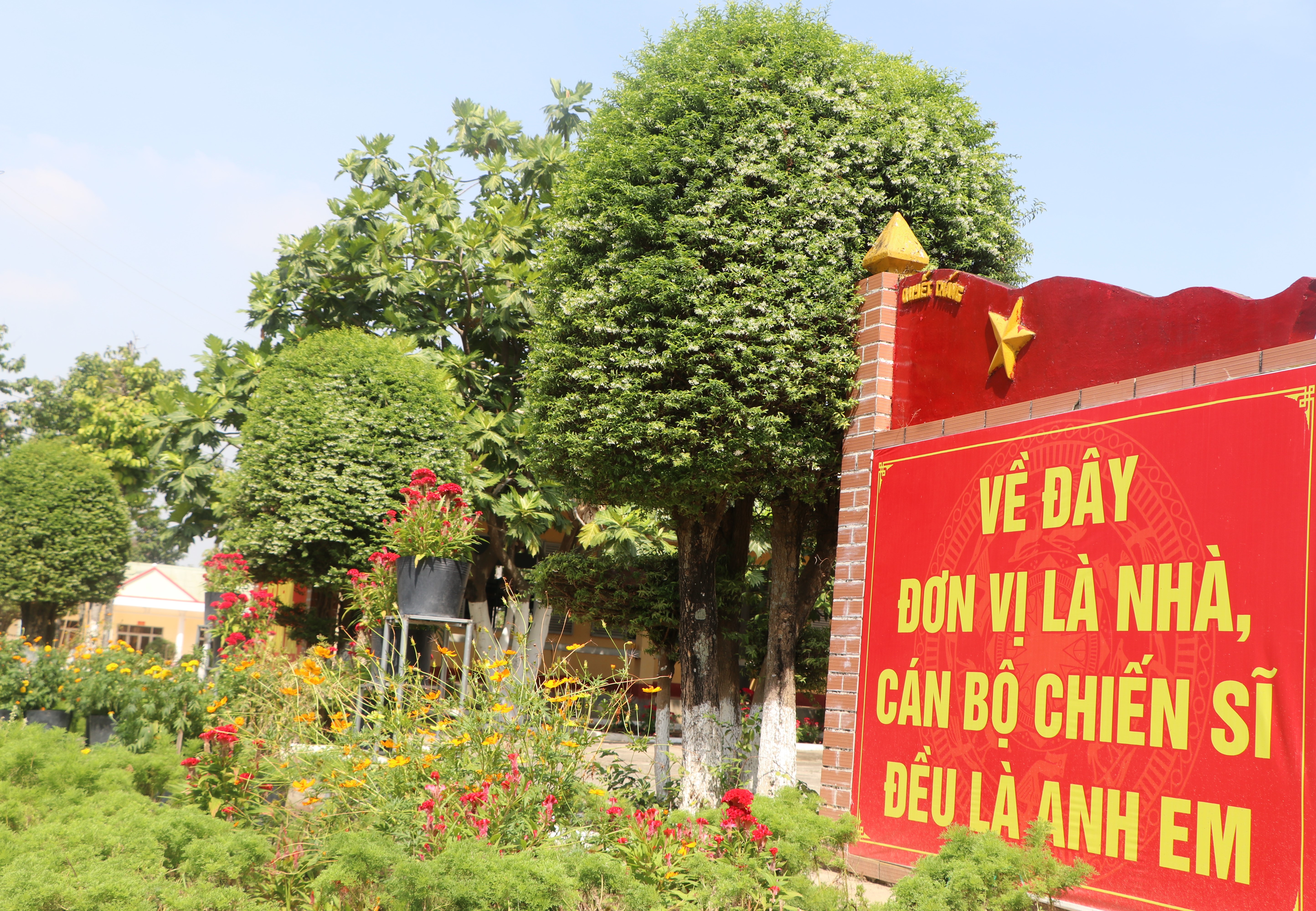 Cảnh quan xanh sạch đẹp, tạo khí thế sôi nổi ngay từ ngày đầu tiếp nhận chiến sĩ mới.