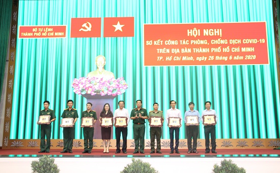 Tại hội nghị, Bộ Tư lệnh TP. Hồ Chí Minh tặng kỷ niệm chương cho 45 đơn vị có nhiều đóng góp cùng với Bộ Tư lệnh Thành phố trong công tác phòng chống dịch Covid - 19.