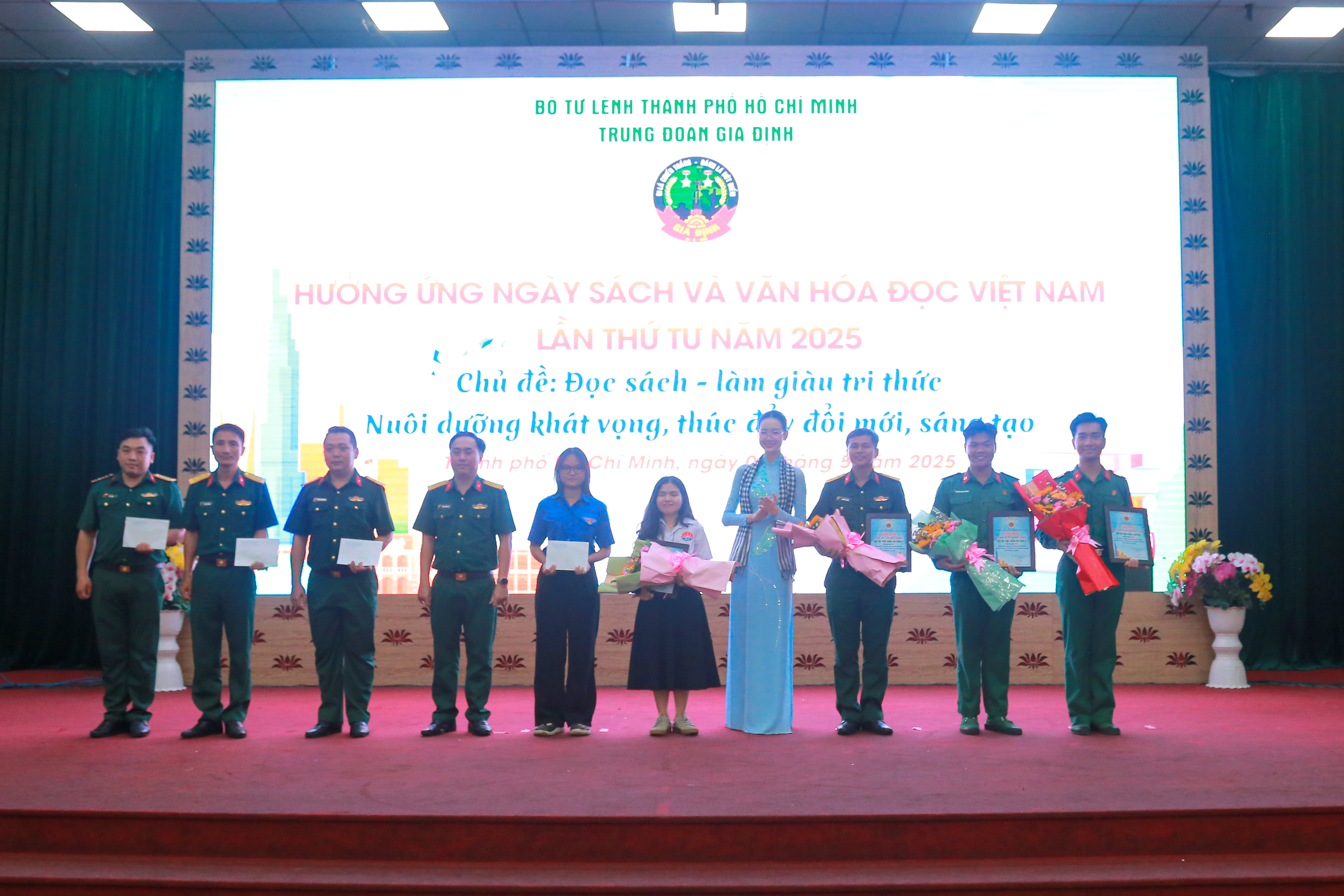 Cán bộ, chiến sĩ, đoàn viên thanh niên đọc sách tại khu vực trưng bày.