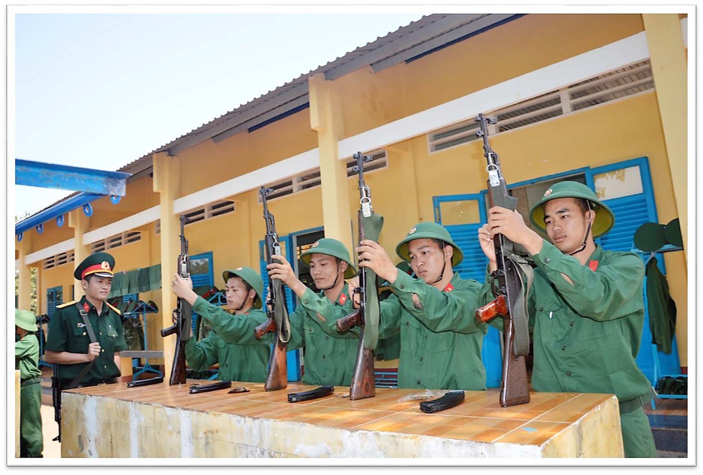 Chiến sĩ Sư đoàn 302 bảo quản vũ khí sau giờ huấn luyện.