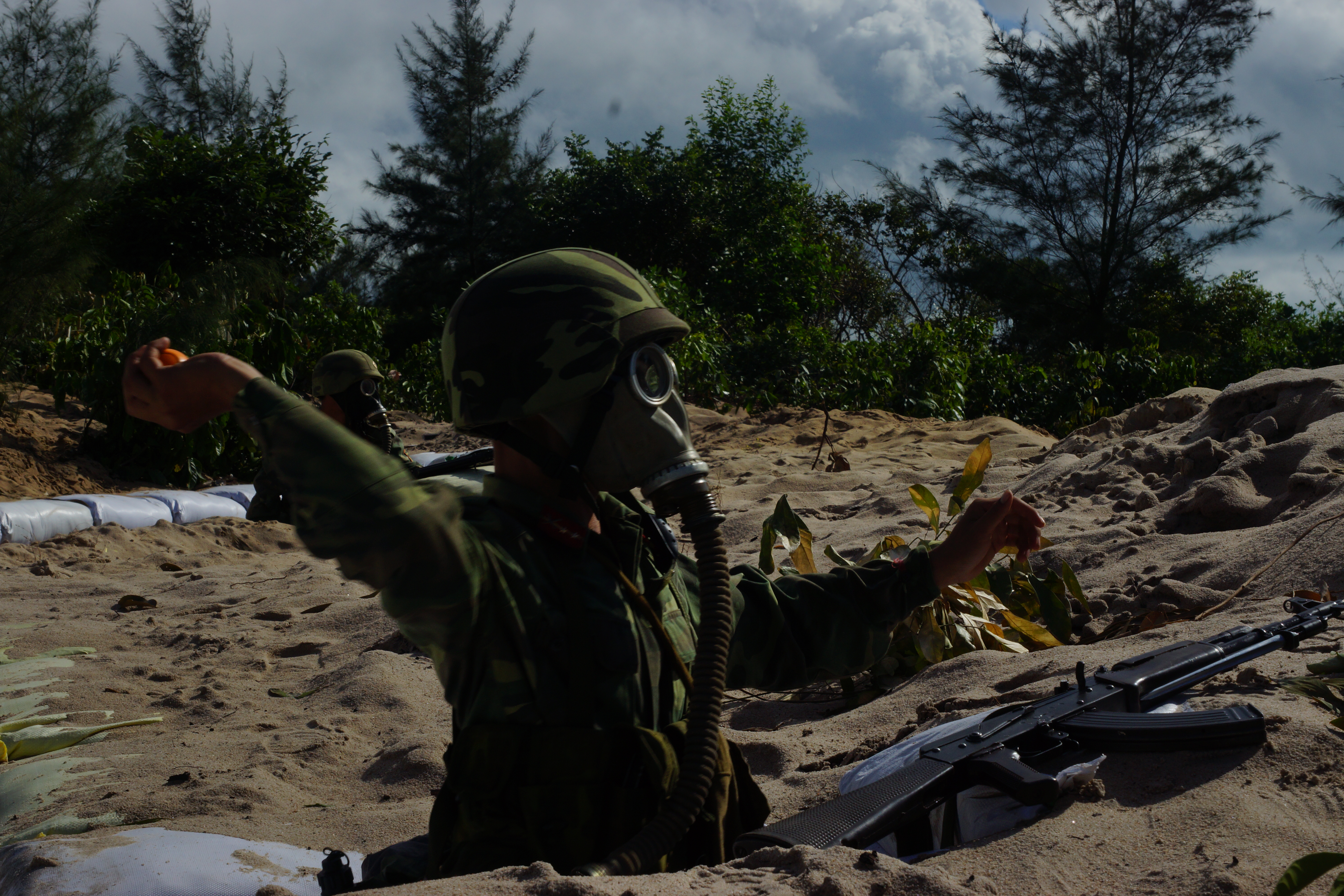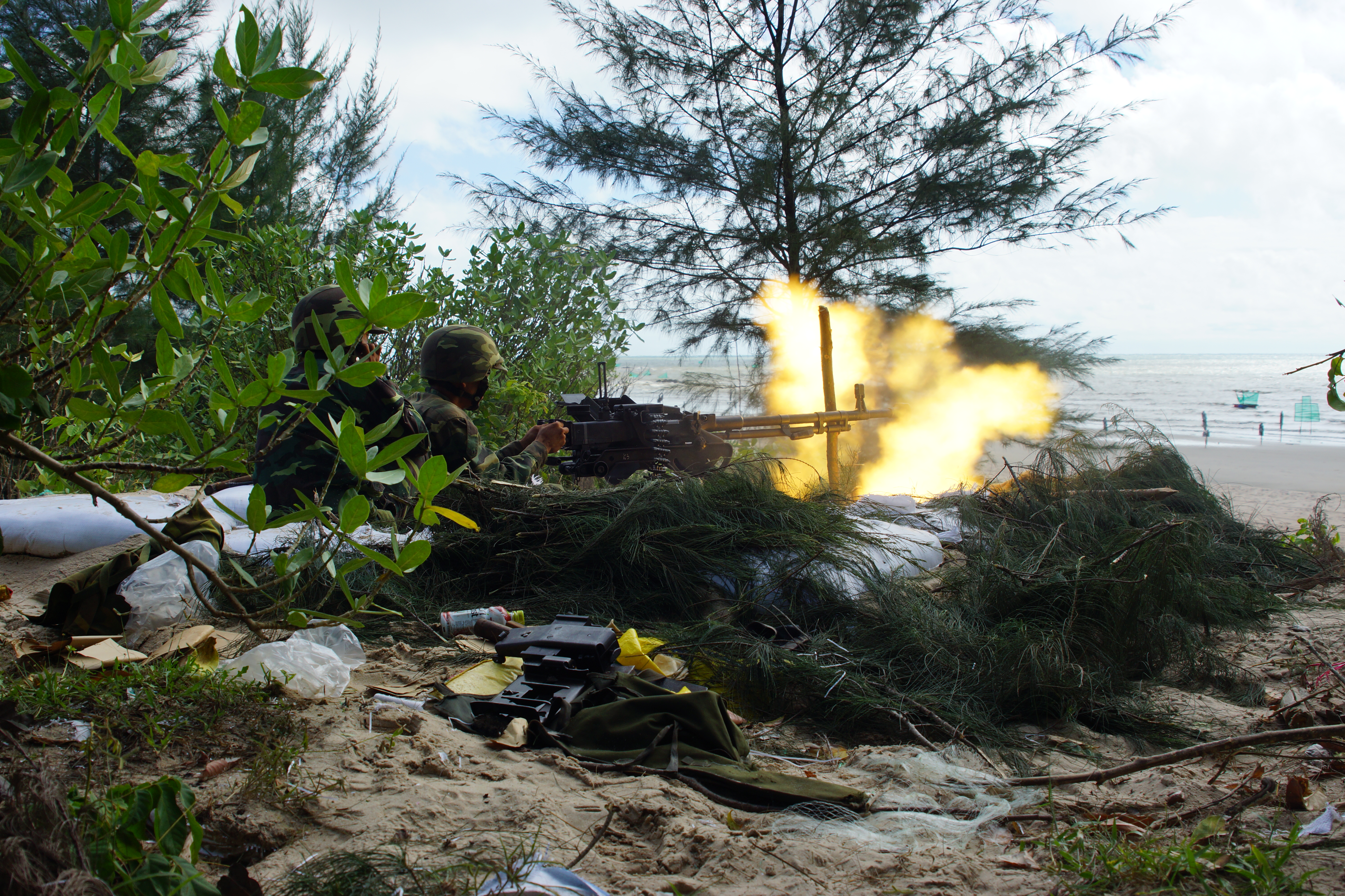 Ở giai đoạn thực hành diễn tập bắn đạn thật, với tình huống địch rời khỏi phương tiện đổ bộ, đánh chiếm vào các khu vực từ thôn 1 đến thôn 3 xã Tân Thắng, huyện Hàm Tân…; tàu xuồng đệm khí chở lực lượng hải quân đổ bộ tăng tốc đánh chiếm mép nước và xe tăng lội nước xung phong vào trận địa phòng ngự của ta.