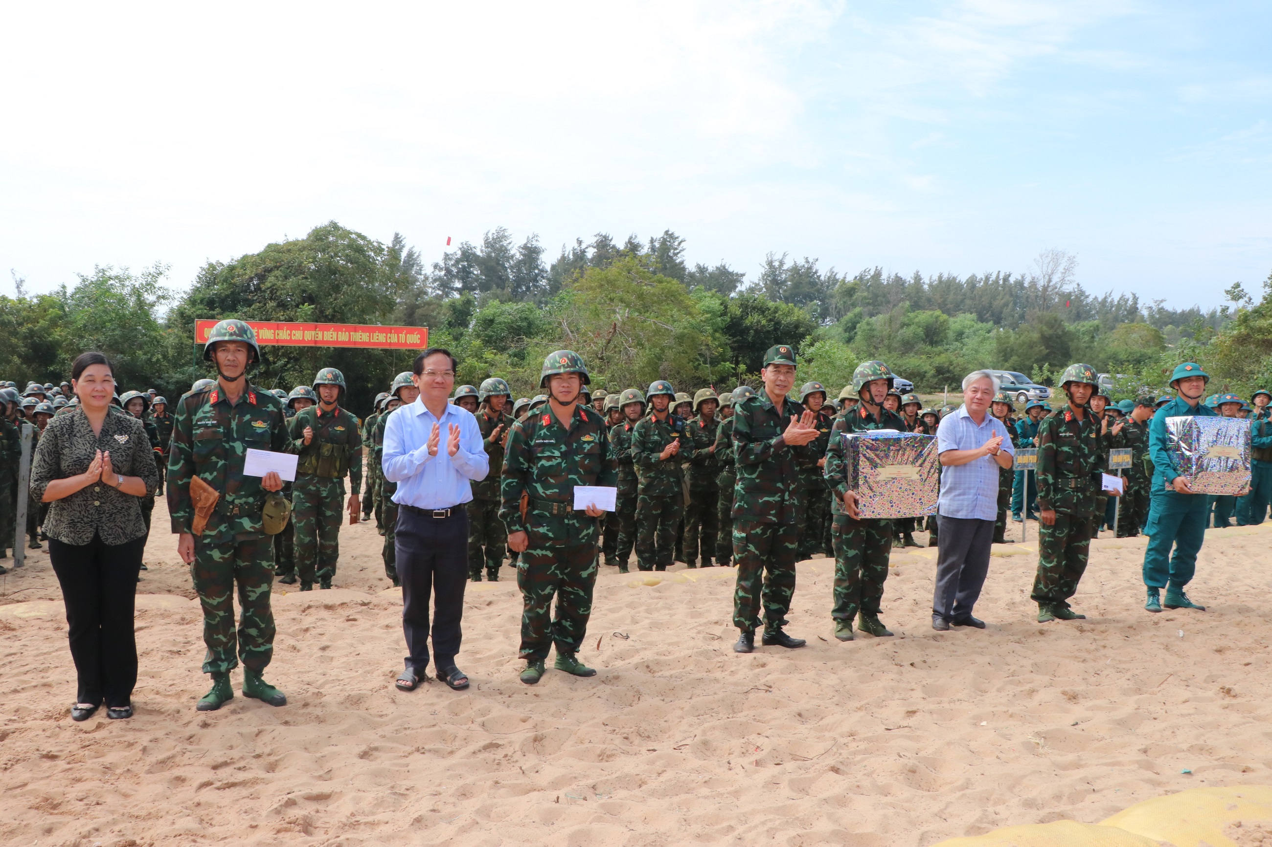 Thiếu tướng Nguyễn Trường Thắng, Tư lệnh Quân khu tặng quà các đơn vị hoàn thành xuất sắc nhiệm vụ diễn tập.