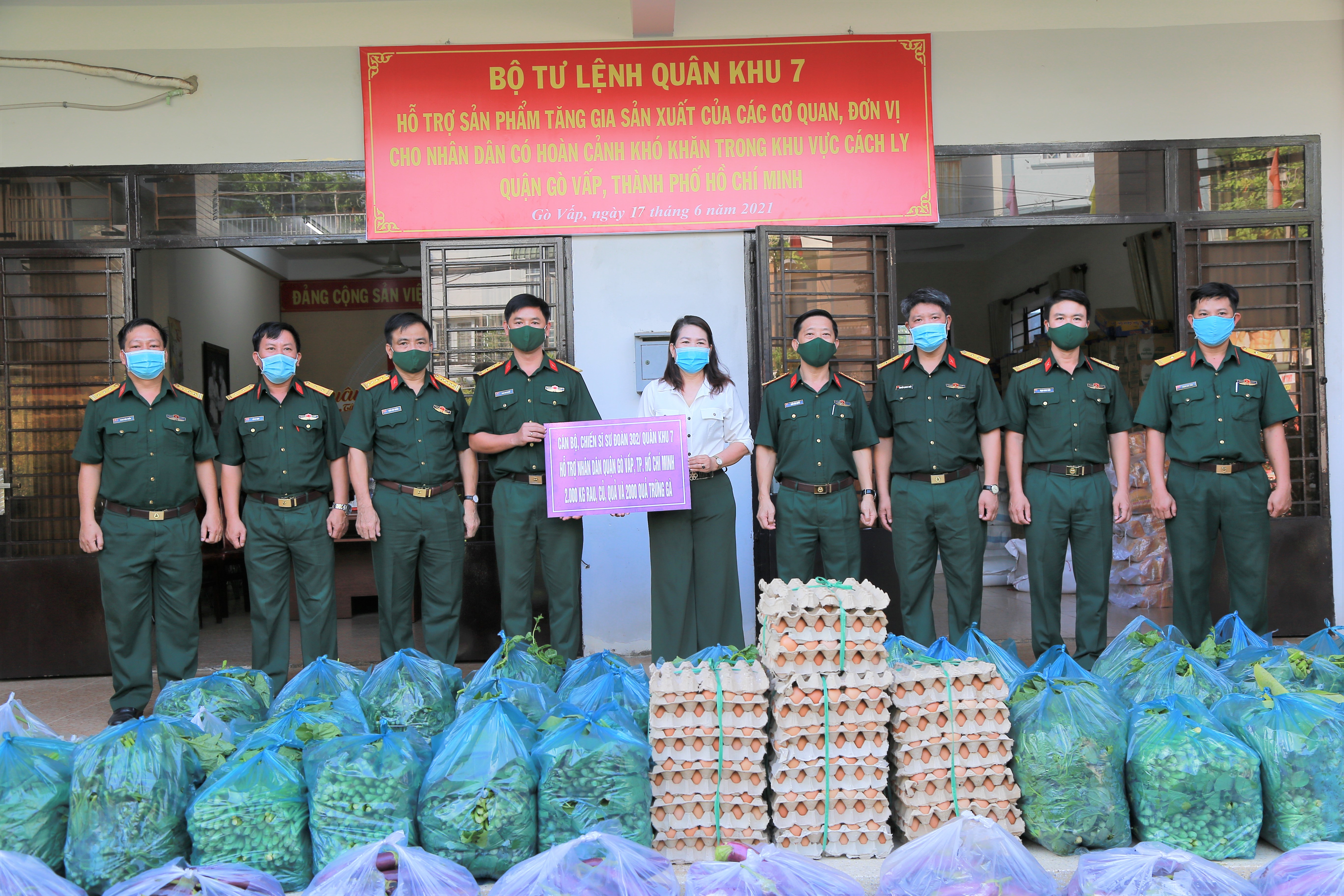 Cán bộ, chiến sĩ Sư đoàn 302 đã trao tặng các sản phẩm tăng gia sản xuất cho bà con nhân dân đang thực hiện cách ly tập trung trên địa bàn quận Phú Nhuận và quận Gò Vấp bao gồm 1.500kg rau, củ, quả các loại và 2.000 quả trứng gà . Các sản phẩm được Ủy ban MTTQ Việt Nam quận Phú Nhuận và Gò Vấp tiếp nhận, chia đều đến các phường cho người dân tại các điểm phong tỏa, cách ly tập trung.
