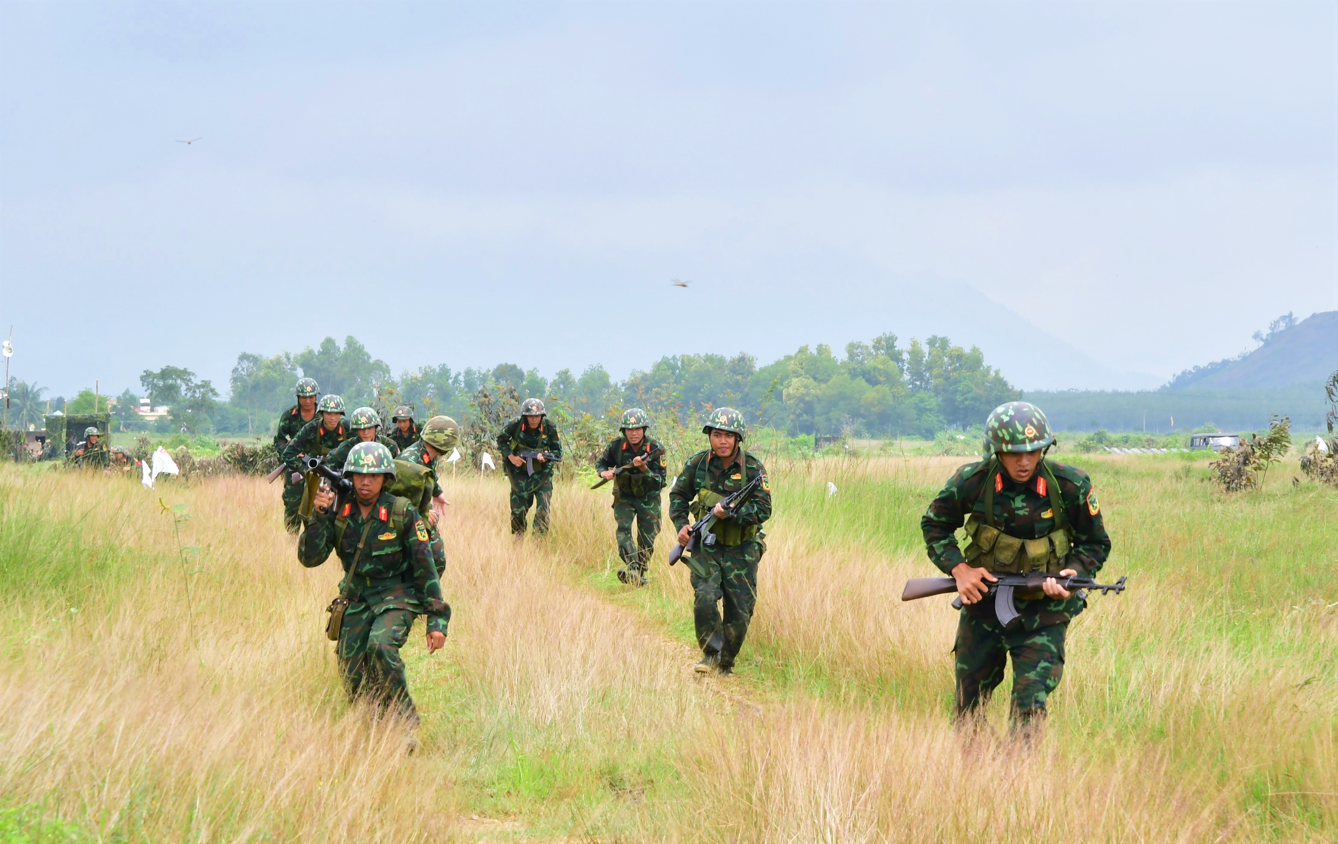 Chiến sĩ Tiểu đoàn 8 cơ động vào trận địa triển khai đội hình chiến đấu.