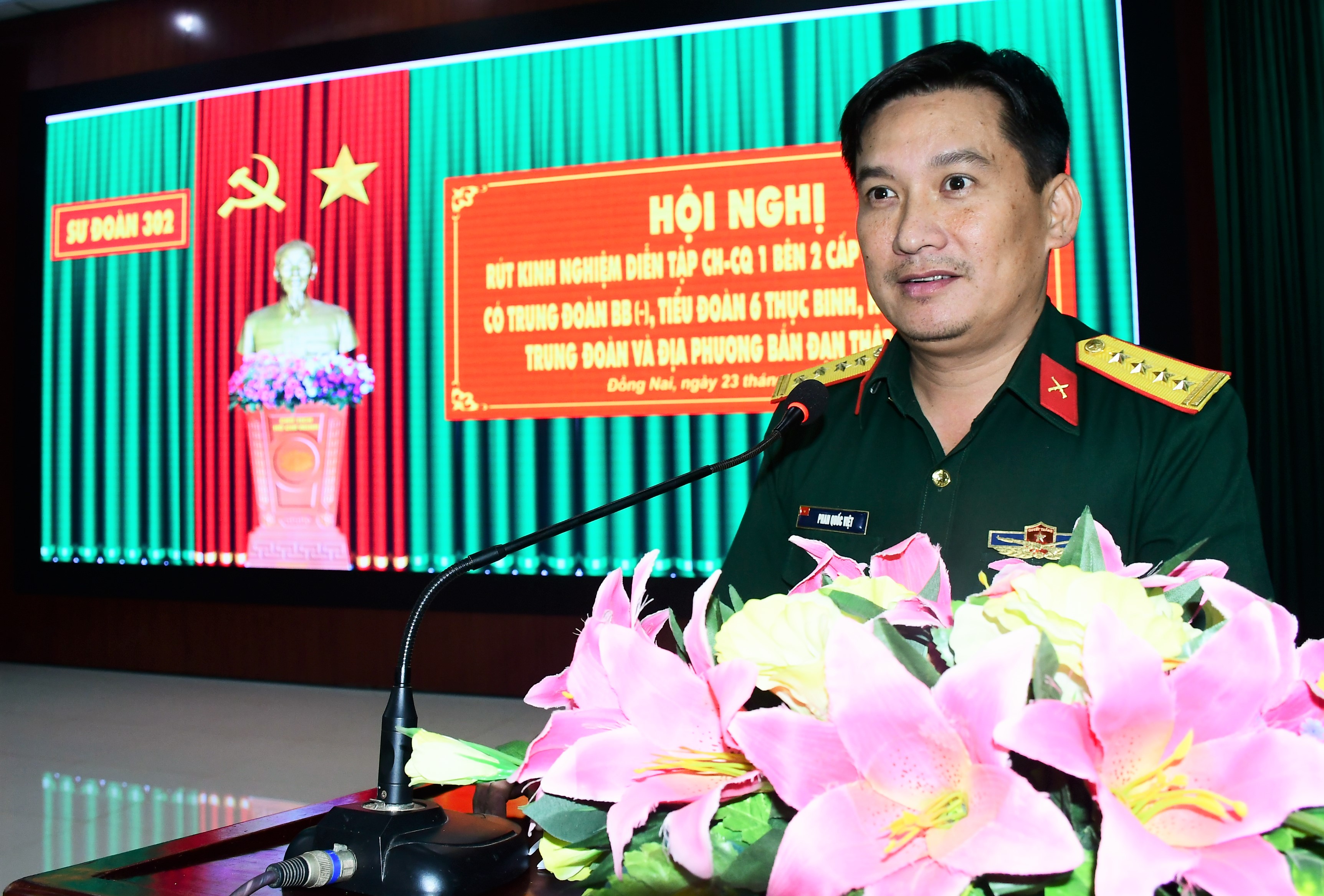 Phát biểu chỉ đạo, Thiếu tướng Đặng Văn Hùng, Phó Tư lệnh, Tham mưu trưởng Quân khu biểu dương sự nỗ lực, cố gắng của cán bộ, chiến sĩ Sư đoàn 302 đã khắc phục khó khăn, hoàn thành xuất sắc nhiệm vụ diễn tập chỉ huy, cơ quan 1 bên, 2 cấp có bắn đạn thật năm 2022. Cuộc diễn tập được lãnh đạo, chỉ đạo chặt chẽ, công tác chuẩn bị kỹ lưỡng, có sự đổi mới toàn diện về quy mô, nội dung và phương pháp, công tác chỉ huy, hiệp đồng diễn tập chặt chẽ, thống nhất.