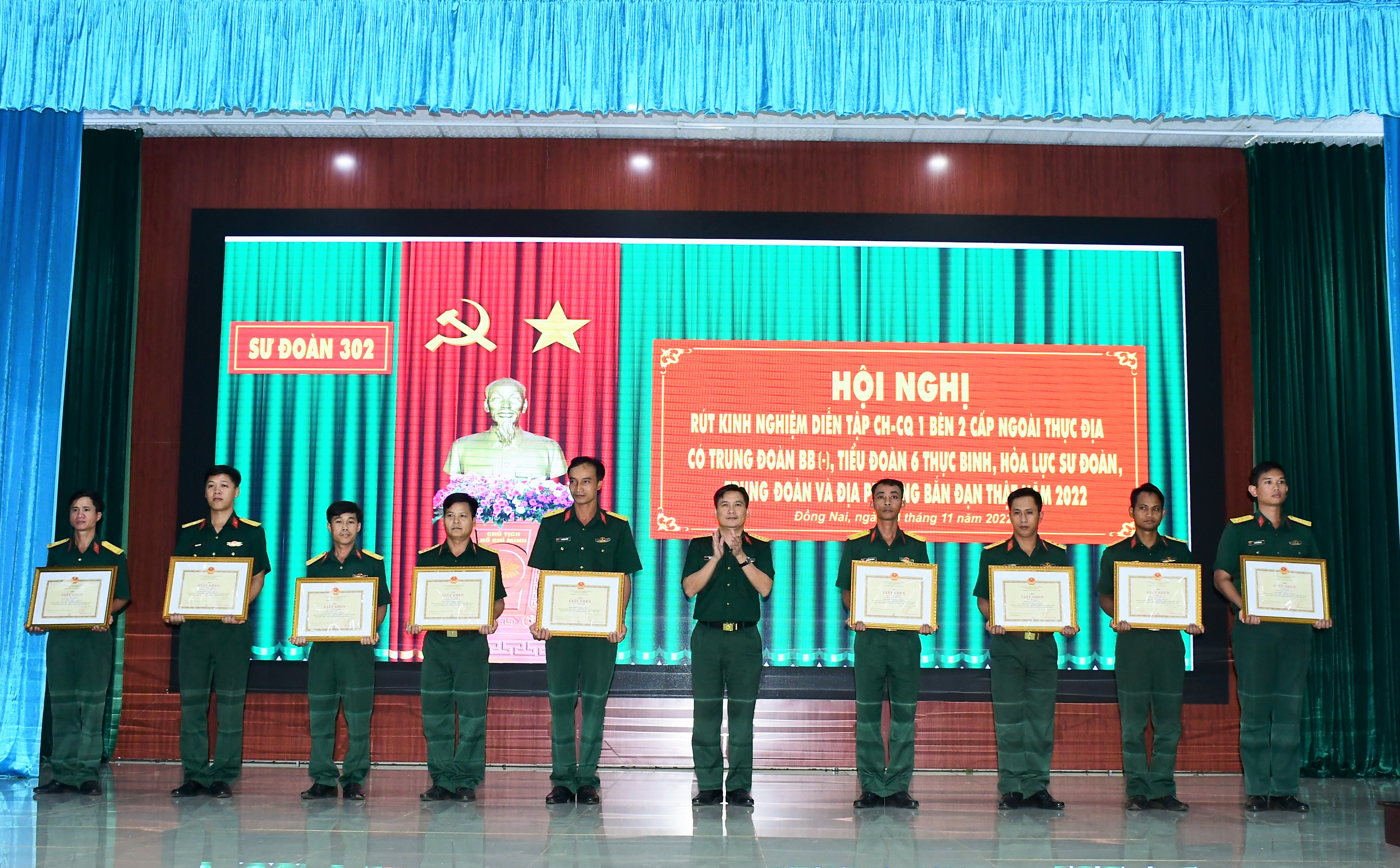 Tại hội nghị, Sư đoàn 302 tặng giấy khen cho 9 tập thể và 12 cá nhân đạt thành tích xuất sắc trong thực hiện nhiệm vụ diễn tập năm 2022.