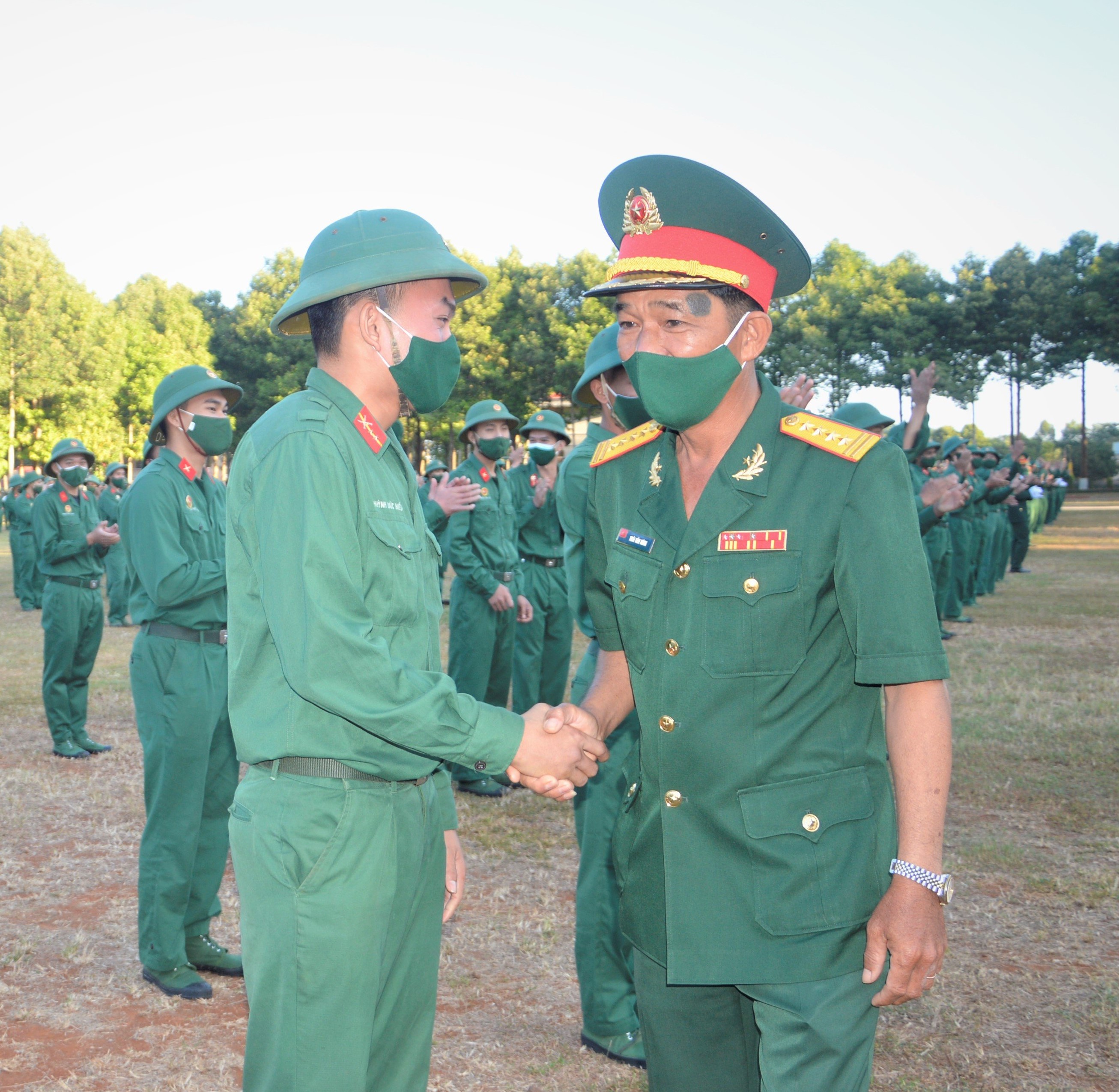 Thủ trưởng sư đoàn động viên quân nhân xuất ngũ năm 2022.