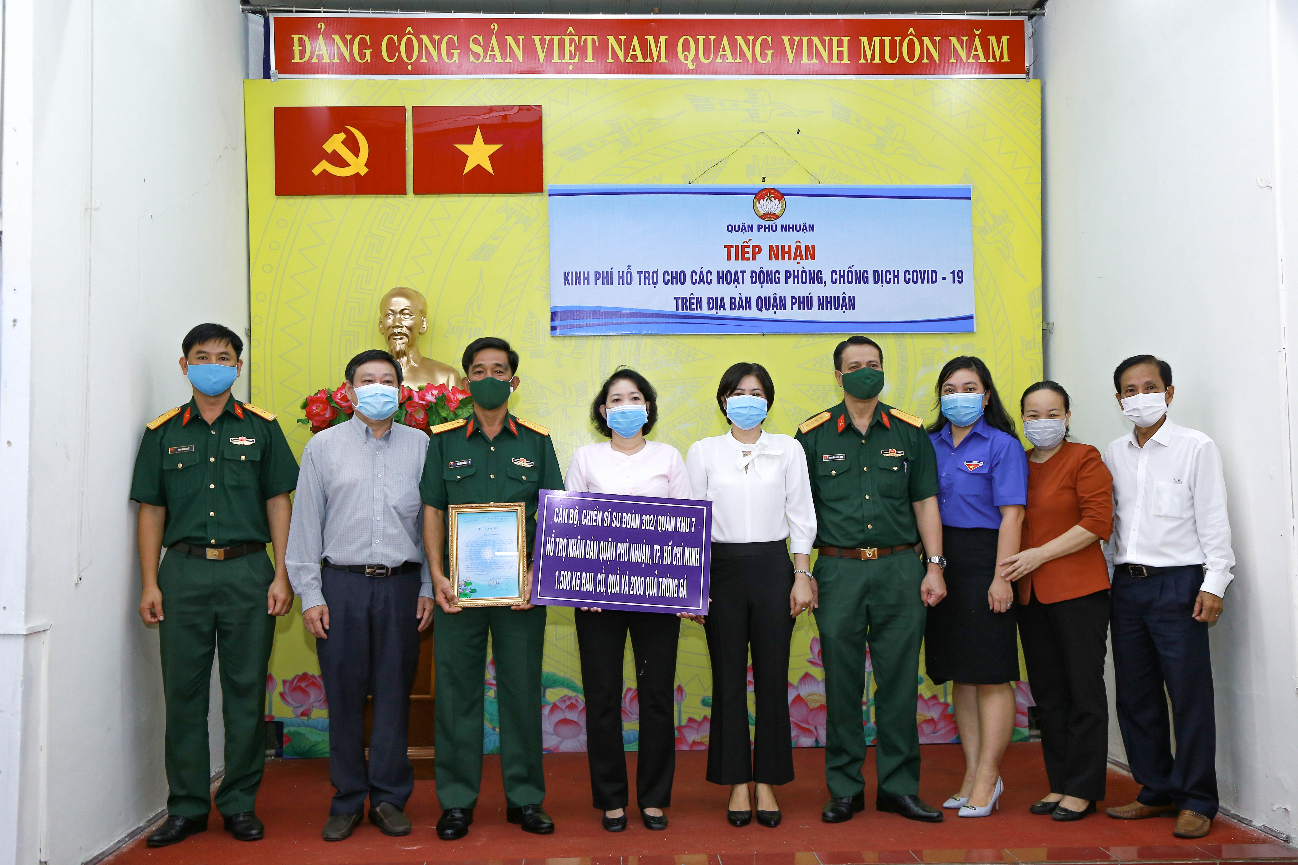 Ngay từ sáng sớm, cán bộ, chiến sĩ Sư đoàn 302 đã vận chuyển 2.000 kg rau, củ, quả; 2.000 quả trứng gà đến trụ sở UBMTTQ quận Phú Nhuận và Gò Vấp để trao tặng. Số thực phẩm này sẽ được chuyển xuống các điểm cách ly qua các gian hàng 0 đồng được tổ chức tại các điểm phong tỏa để hỗ trợ người dân, nhất là các hộ gia đình có hoàn cảnh khó khăn.