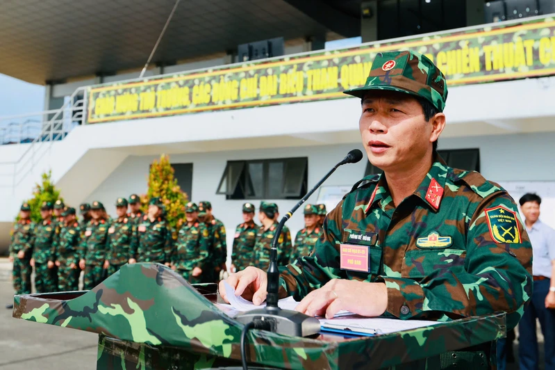 Đại tá Phùng Thế Hùng, Phó Tham mưu trưởng Quân khu theo dõi, chỉ đạo diễn tập.