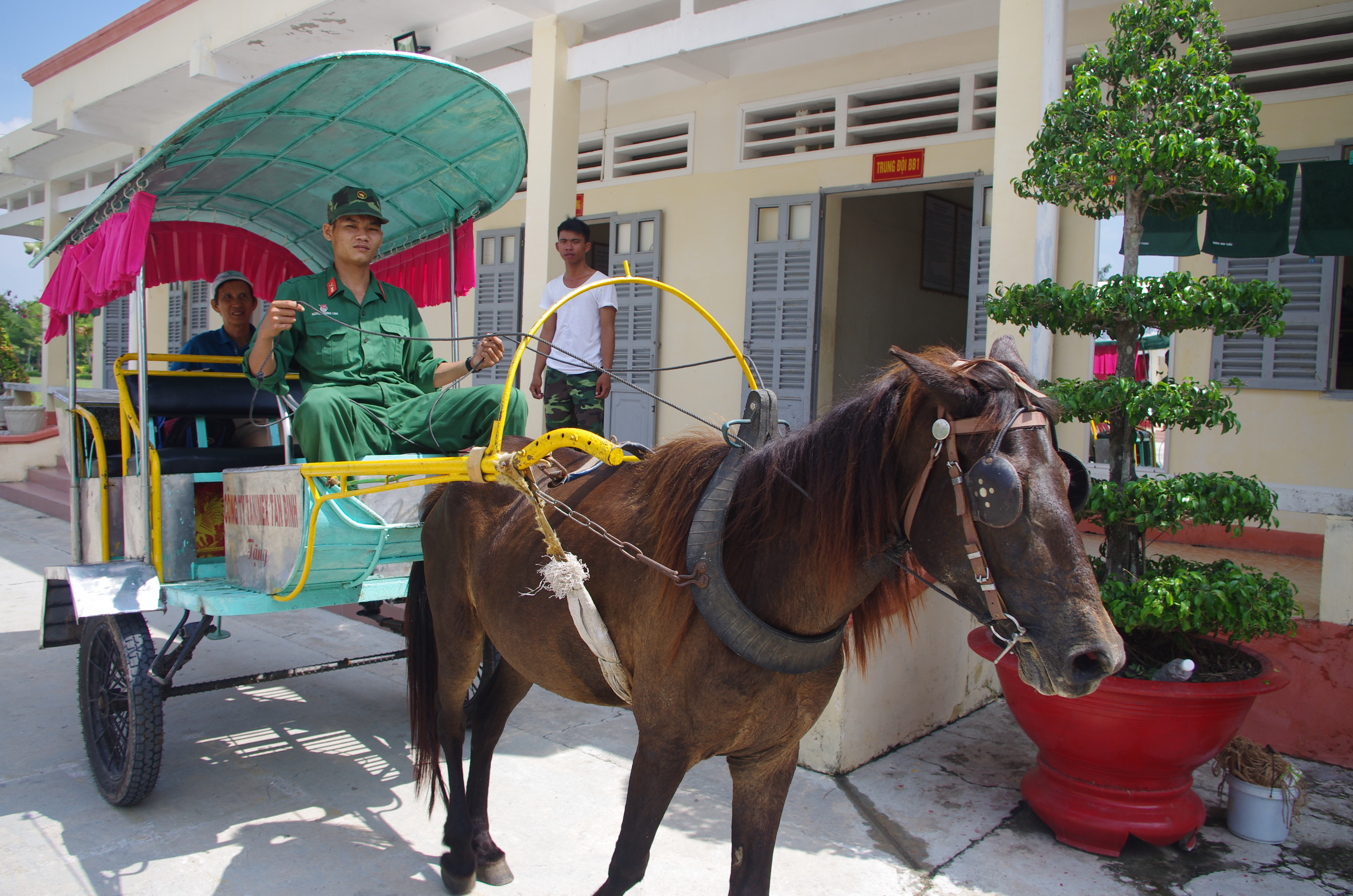 Xe ngựa của Sư đoàn 5 phục vụ thân nhân gia đình đến thăm chiến sĩ mới.
