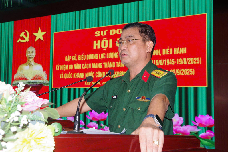 Đại tá Nguyễn Hải Nam, Sư đoàn trưởng Sư đoàn 5 phát biểu.