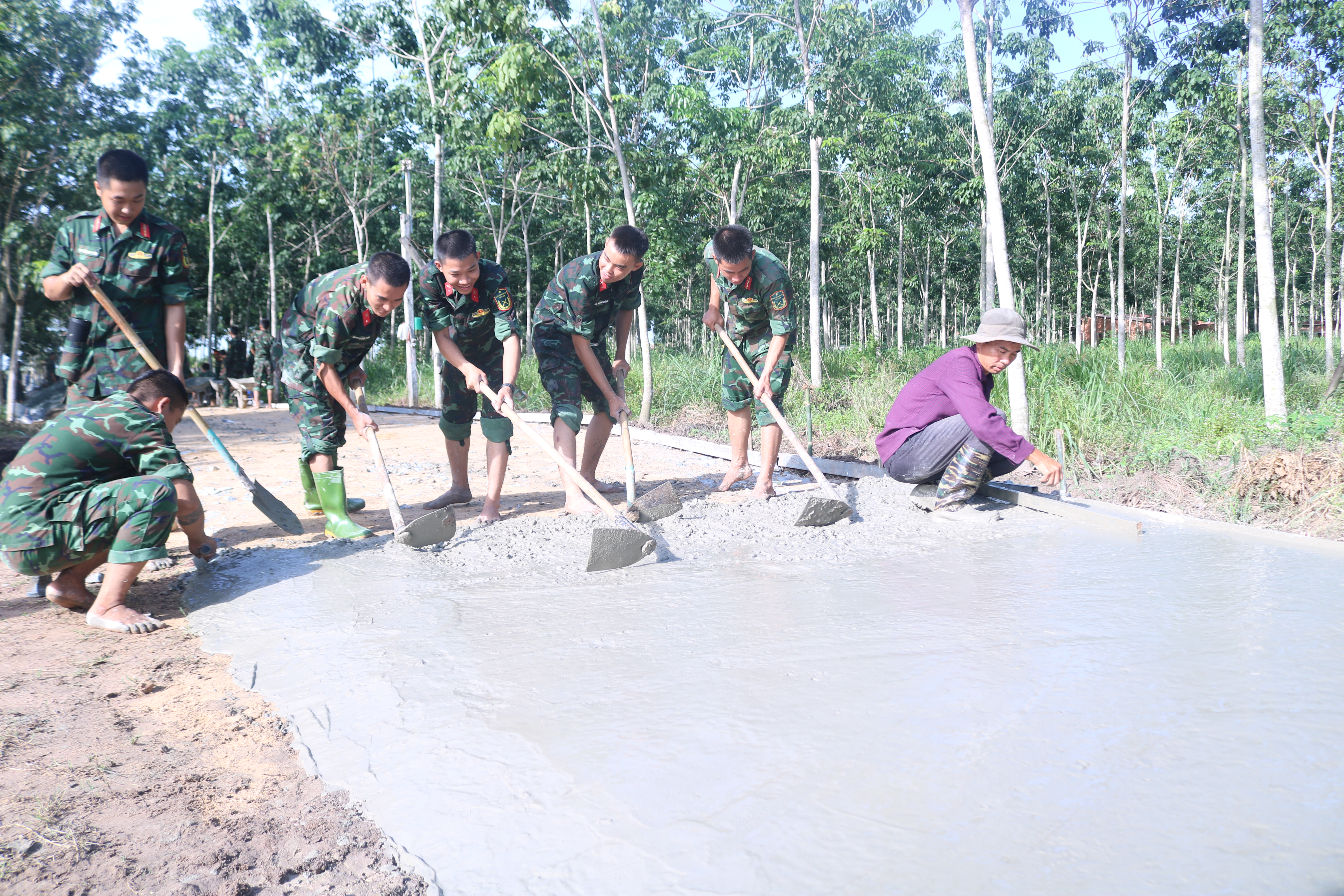 Cán bộ,chiến sĩ Sư đoàn 5 làm đường giao thông liên thôn.