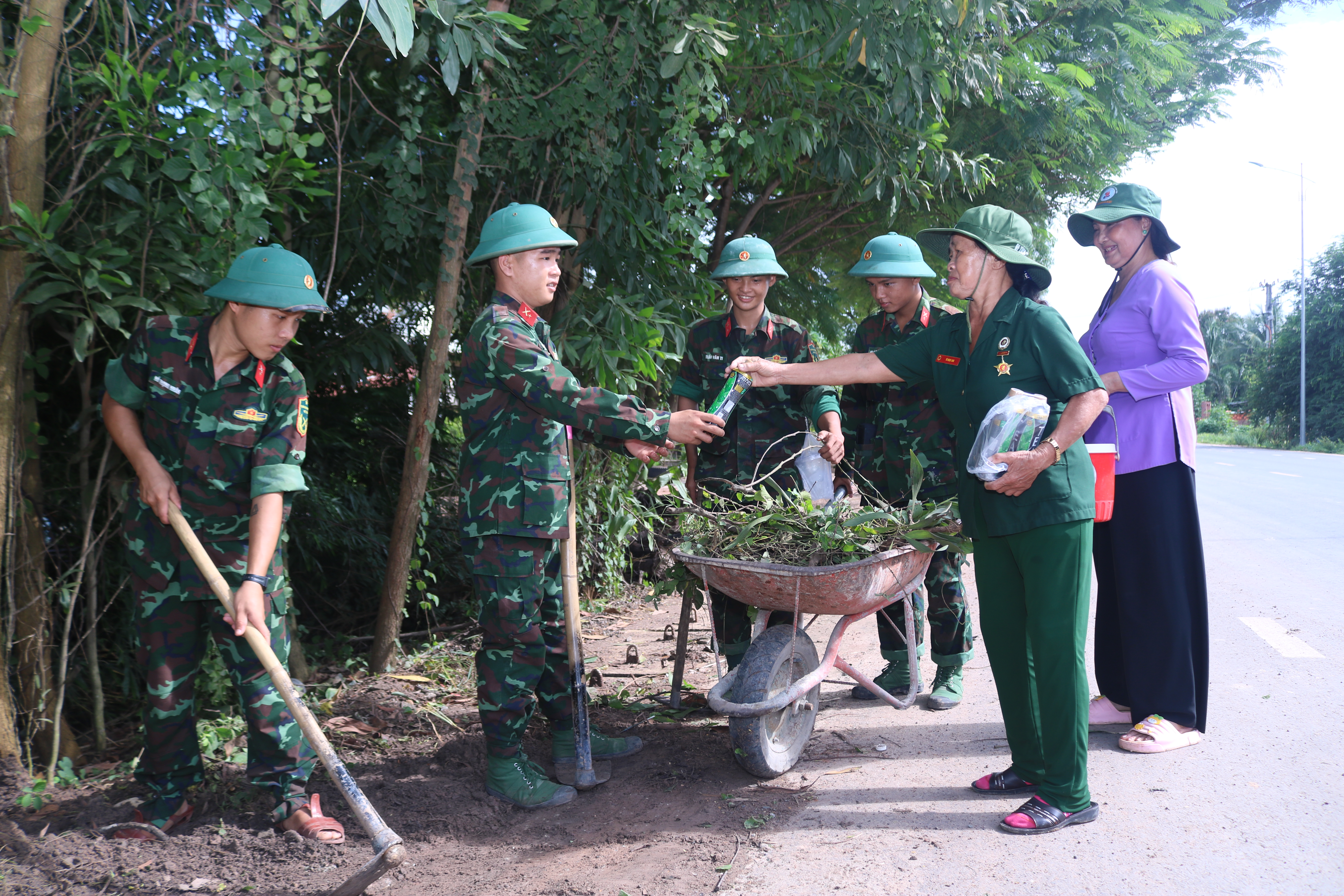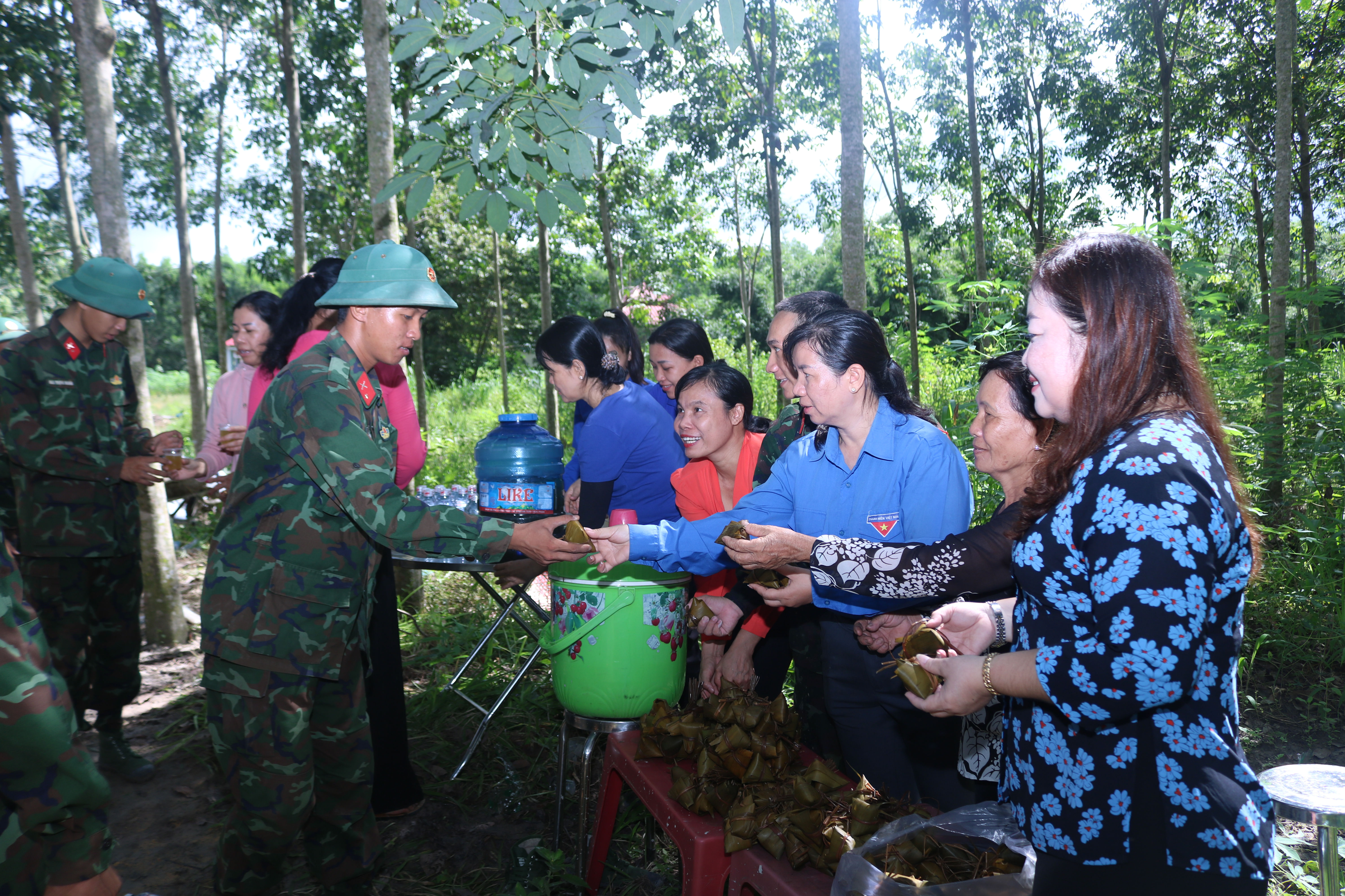 Người dân tặng nước mát, thức ăn cho bộ đội.