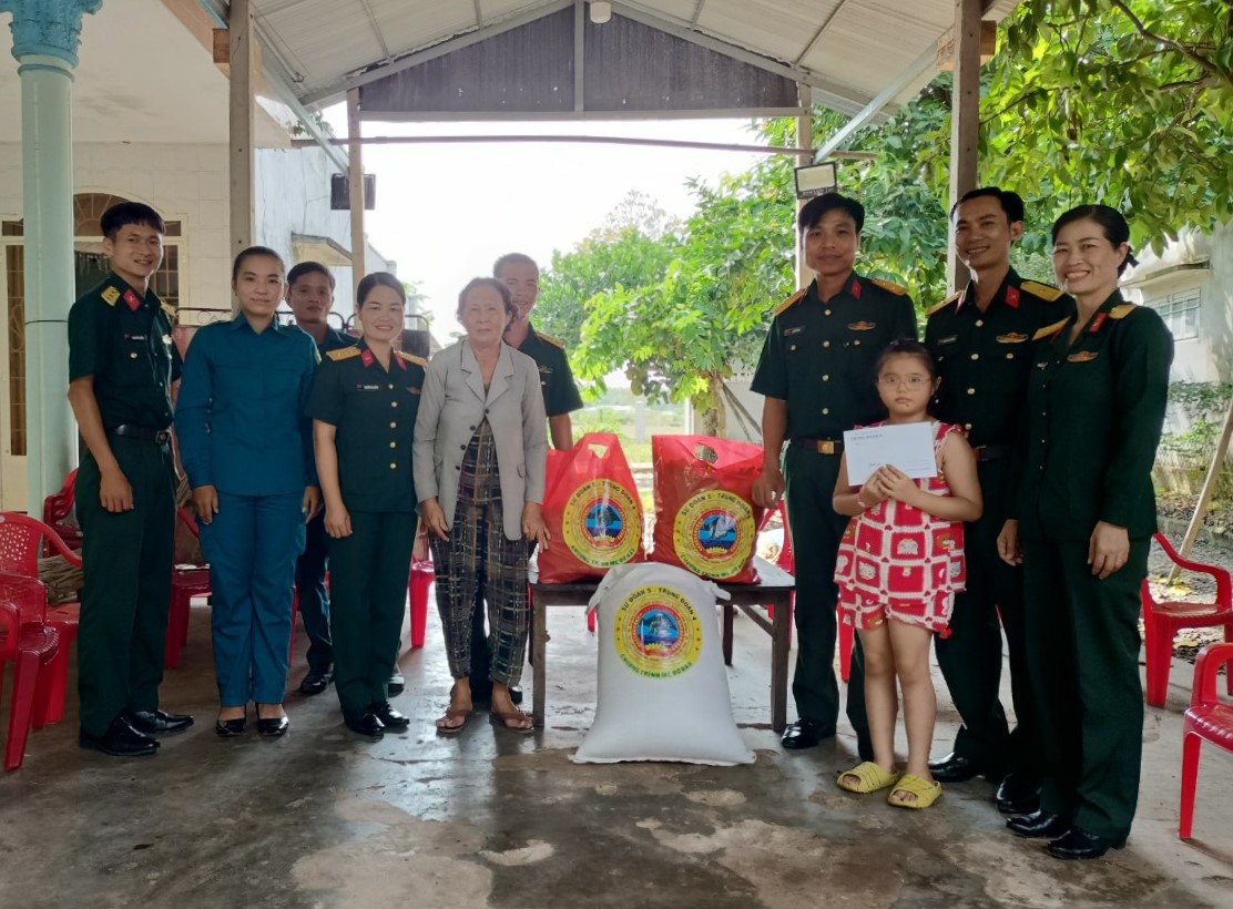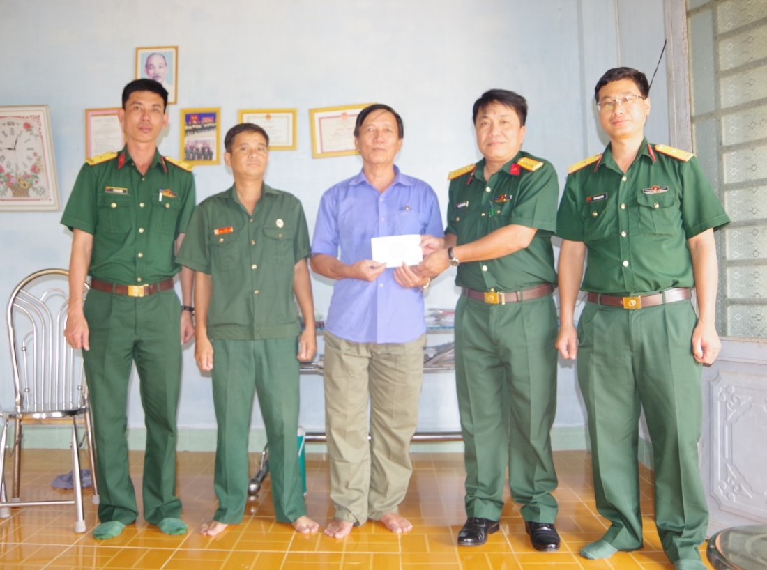 Đại tá Nguyễn Hồng Cảnh, Phó Chính ủy Sư đoàn 5 thăm, tặng quà đối tượng chính sách trên địa bàn.