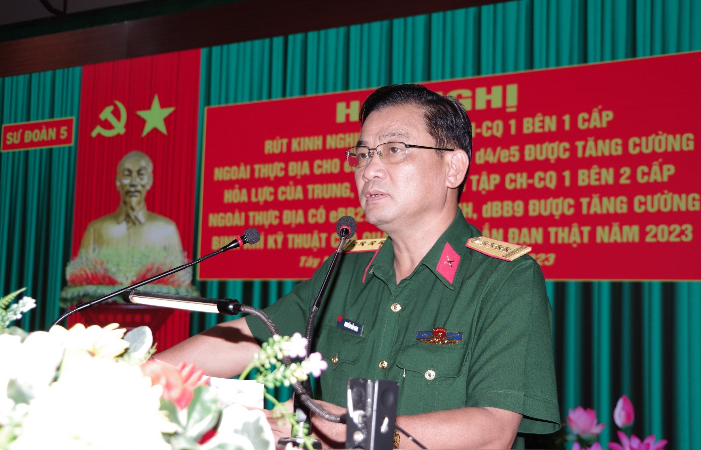 Đại tá Nguyễn Hải Nam Sư đoàn trưởng Sư đoàn 5 chủ trì hội nghị.