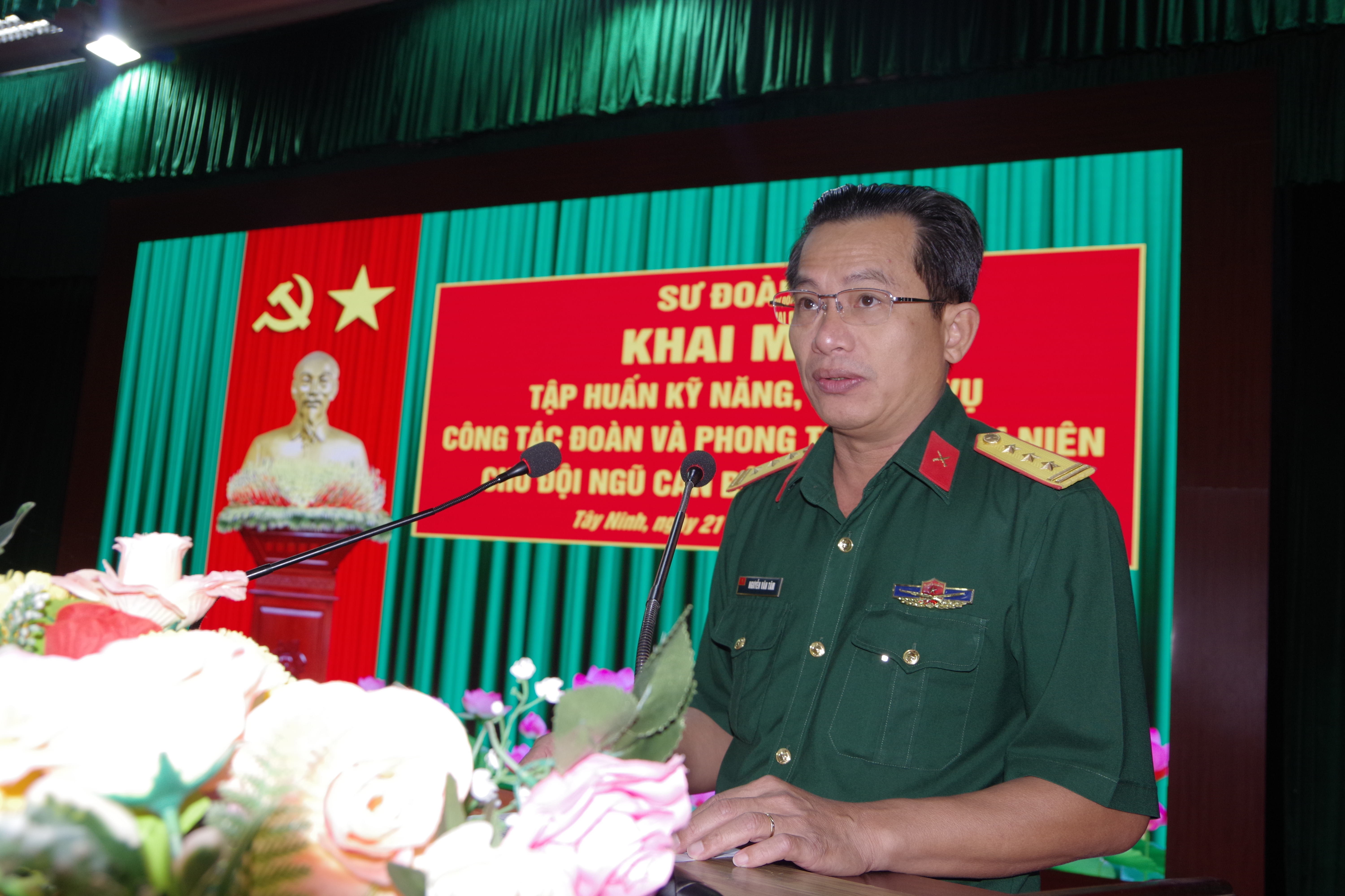 Thượng tá Nguyễn Văn Tâm, Phó Chủ nhiệm Chính trị Sư đoàn phát biểu khai mạc lớp tập huấn.