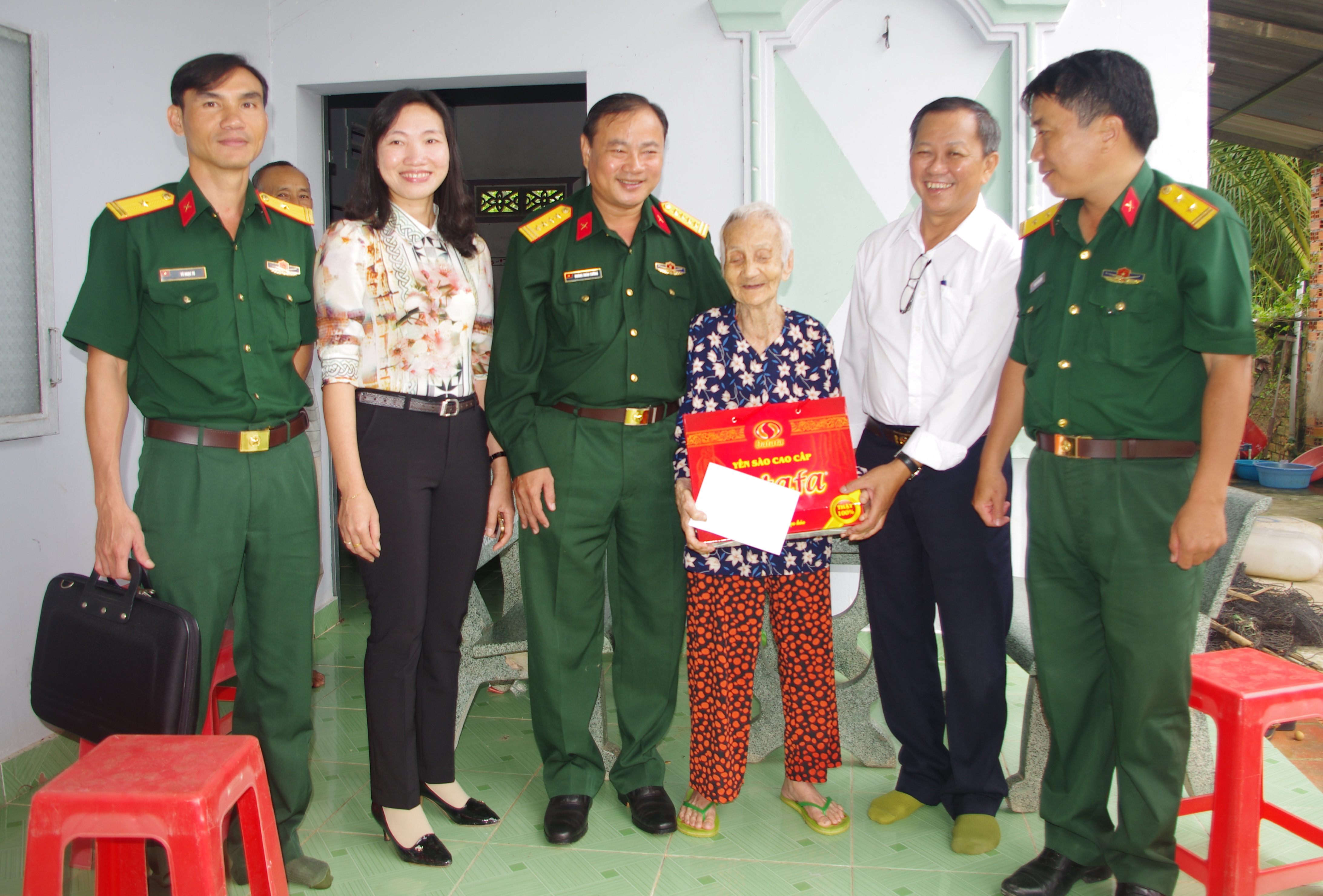 Đại tá Hoàng Xuân Cường - Phó Chính ủy Sư đoàn 5 thăm, tặng quà MVNAH Nguyễn Thị Chảy tại xã Đồng Khởi, huyện Châu Thành.